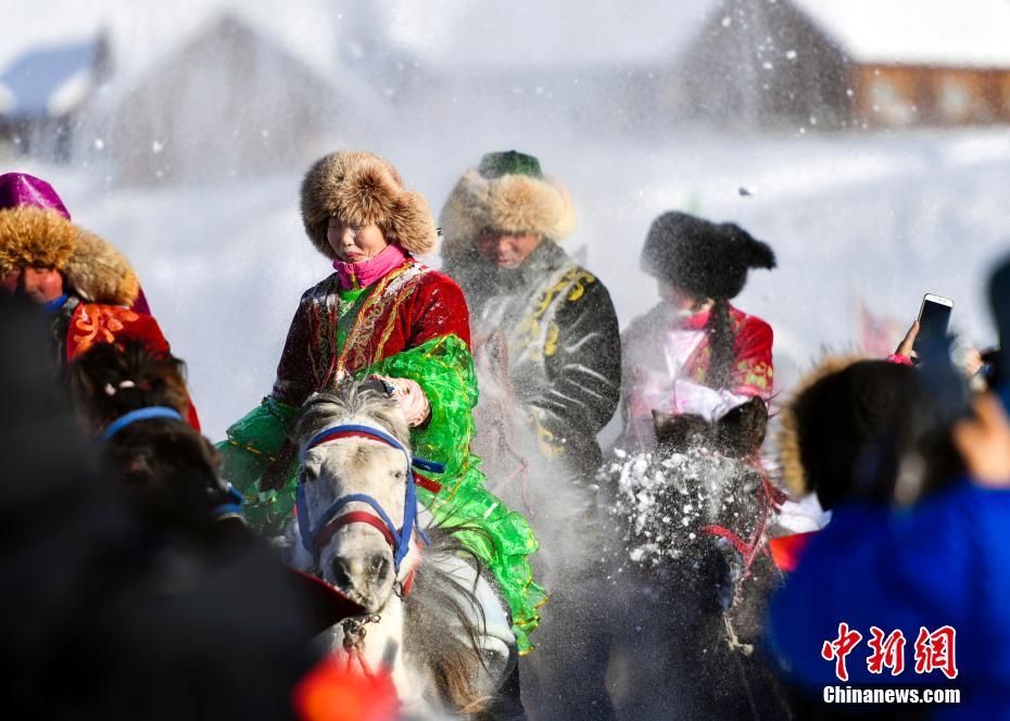 1月1日,新年第一天,地处新疆阿勒泰山深处,被誉为“神的自留地”的禾木村,当地民众策马扬鞭奔驰在茫茫雪原中,迎接新年到来。近日的一场大雪令禾木村的积雪厚度达到50厘米左右,也将大山深处的禾木村装扮的如同“童话世界”,新疆喀纳斯冰雪风情旅游季也正式拉开帷幕。中新社记者 刘新 摄