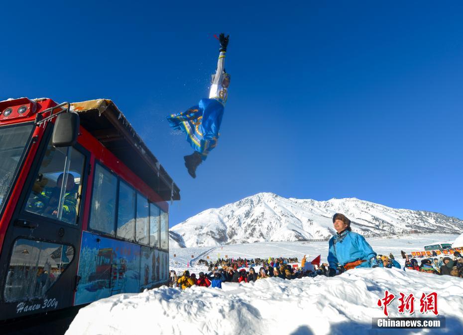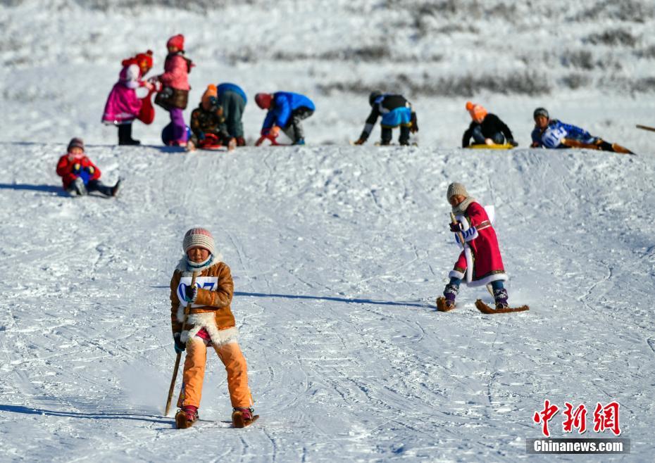 1月1日,新年第一天,地处新疆阿勒泰山深处,被誉为“神的自留地”的禾木村,当地牧民参加古老毛皮滑雪比赛。选手们脚蹬毛皮滑雪板,身后拖着“猎物”,在深山密林中你追我赶,再现当地民众古老的狩猎生活。近日的一场大雪令禾木村的积雪厚度达到50厘米左右,也将大山深处的禾木村装扮的如同“童话世界”,新疆喀纳斯冰雪风情旅游季也正式拉开帷幕。中新社记者 刘新 摄