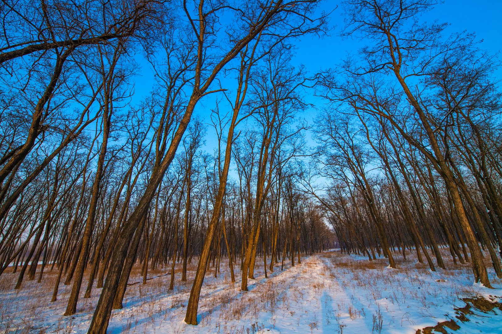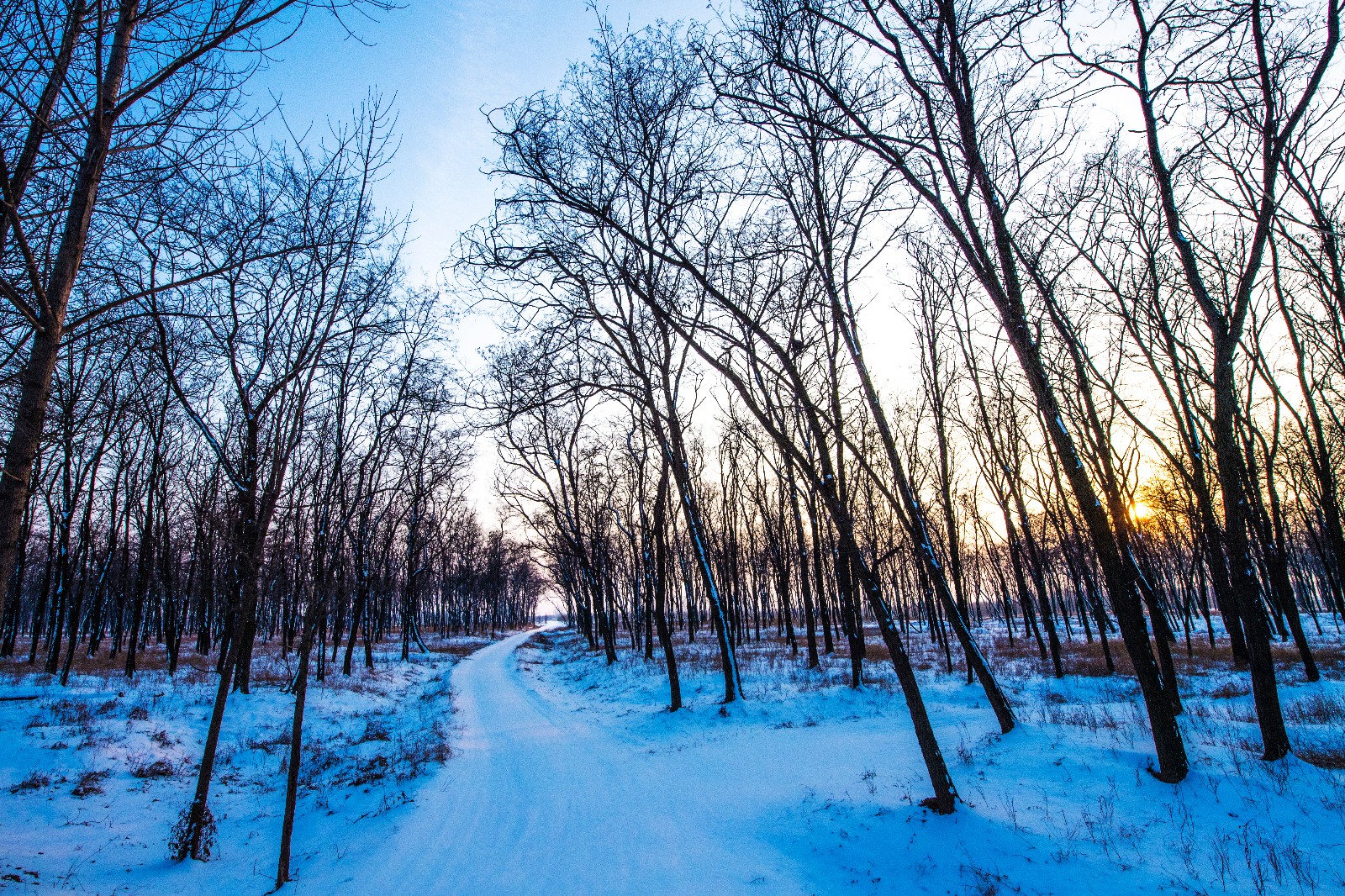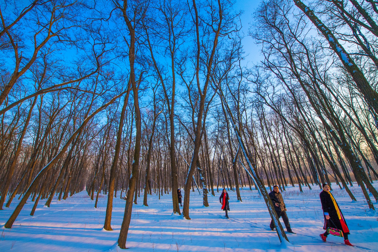冬天,白雪皑皑,银装素裹,薄雾缭绕林间,凸显这片森林的苍劲和粗犷。