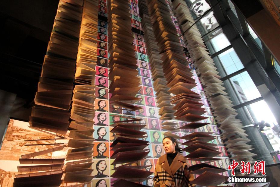 1月20日,天津社会山文旅港“民国物语”博物馆开馆。该街区和博物馆以多种艺术形式展示了“民国”社会时代的历史变迁与浮光掠影。图为“民国物语”博物馆内“爱玲说”展区将张爱玲生平事迹与作品书稿结合装置艺术形成展示奇观,使观众徜徉穿梭其间,品读文学偶像的故事作品。中新社记者 张道正 摄