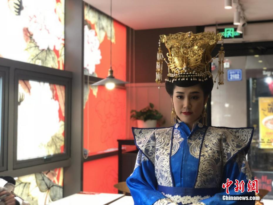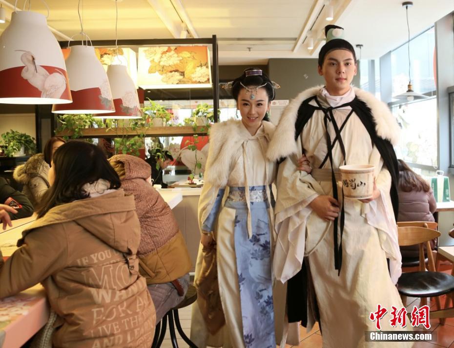 古装青年男女亮相无锡闹市一餐厅。孙权 摄