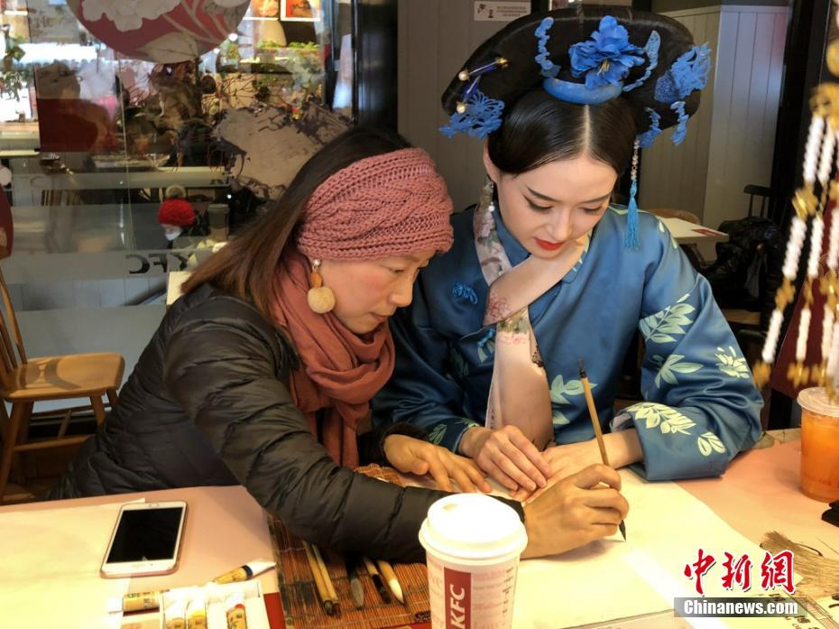2月1日,一群身着古装的青年男女亮相无锡闹市区,他们推开一处餐厅门后“闲庭信步”,穿梭在顾客身边,让人恍惚间以为他们是“穿越”而来。据悉,这些靓丽模特在餐厅中转悠一圈后,还纷纷落座随画师学习作画,一派古风自成风景,很快就引来了众人举手机拍照“相迎”。孙权 摄