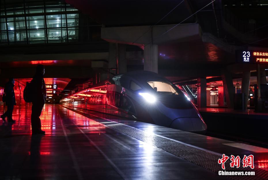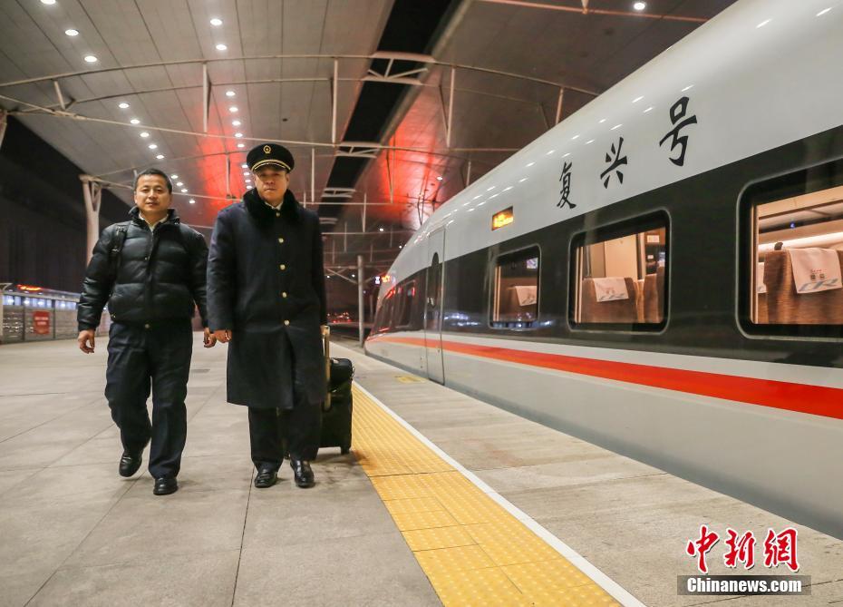 一年一度的春运大幕开启,一列列高铁、动车已开始行驶。很少有人知道,在千万旅客享受铁路带来的“贴地飞行”之前,有一趟列车已经作为“领航者”为旅途确认出一条安全畅通的运行轨道。图为京津城际首趟“复兴号”开路车从北京南站正式启程。 中新网记者 翟璐 摄