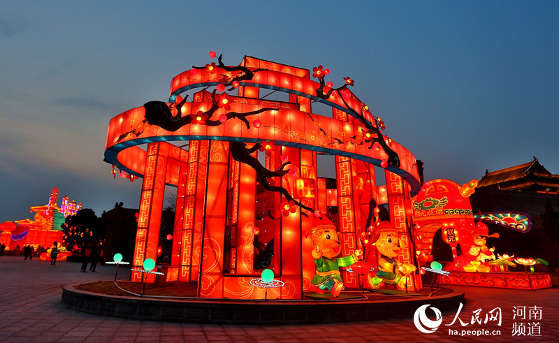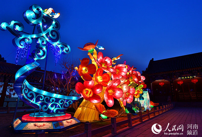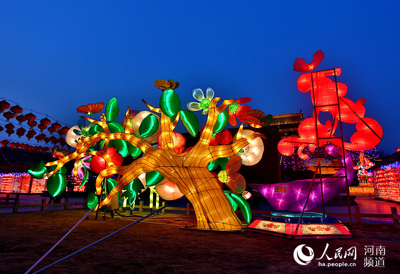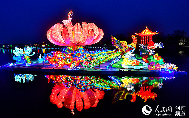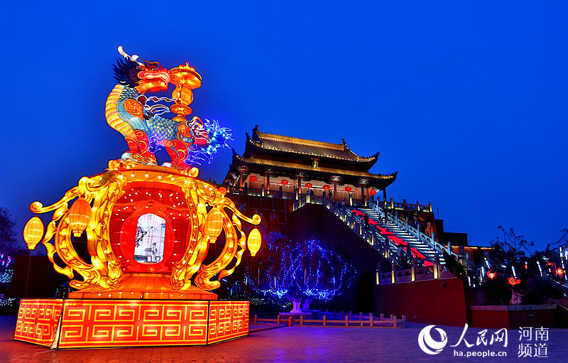 人民网开封2月19日电 “灯火辉煌耀九天,流光溢彩映古城。”2月18日晚,河南开封龙亭公园景区内溢着吉庆祥瑞的过节气氛,120余组彩灯气势恢宏、造型精美。金光璀璨的宋代宫殿跃然于眼前,使人顿生穿越时空、梦回千年之感。