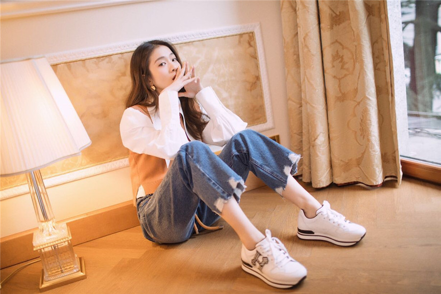张雪迎惊喜亮相米兰时装周。她身着橘色针织背心内搭个性衬衫,复古又俏皮。宽松的牛仔裤加上运动鞋,为整体look增添一丝运动感。整体造型甜美不失个性!