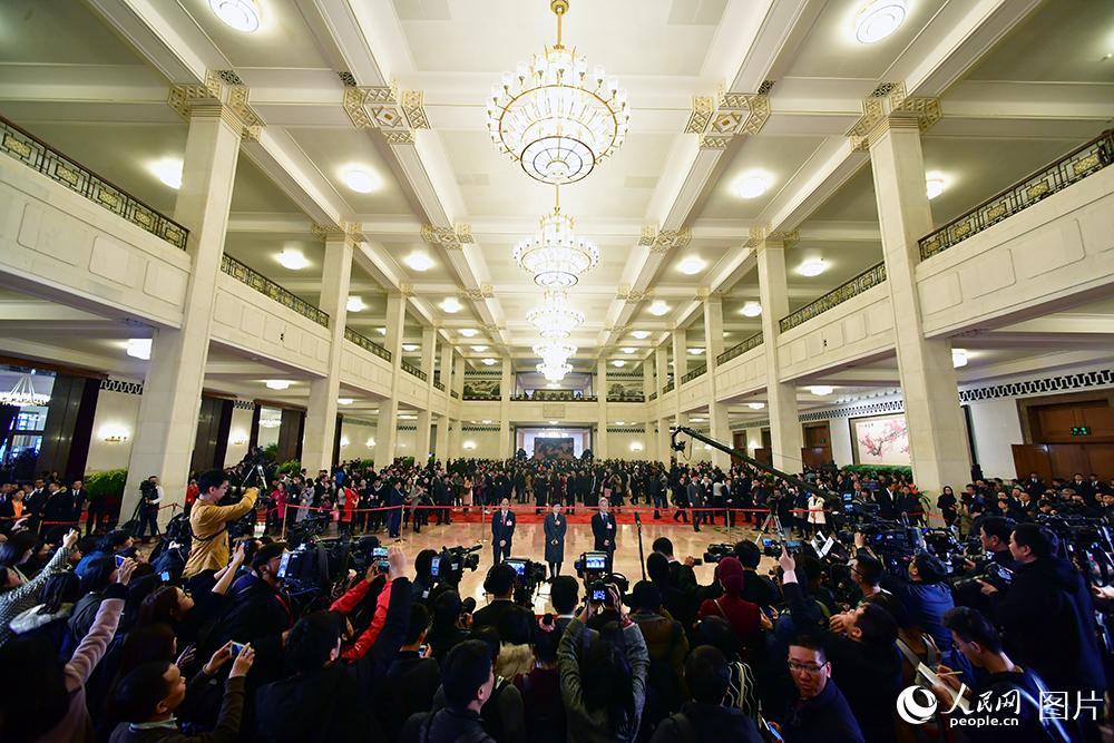 人民网北京3月3日电 (记者万鹏、于凯)全国政协十三届一次会议于今日下午在人民大会堂开幕。会前,备受媒体关注的“委员通道”在人民大会堂东门内中央大厅北侧首次开启。