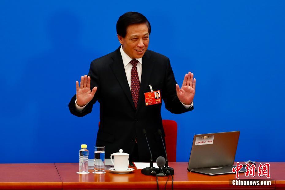十三届全国人大一次会议于3月4日上午11时在人民大会堂新闻发布厅举行新闻发布会。大会发言人张业遂就大会议程和人大工作相关的问题回答中外记者的提问。中新社记者 富田 摄