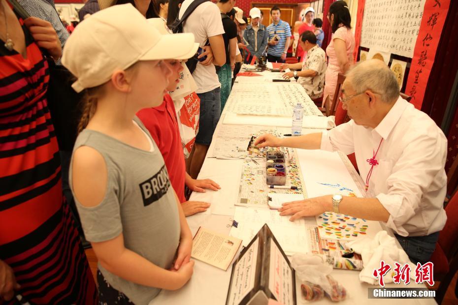 3月4日,中国驻澳大利亚大使馆在堪培拉举行“中国日”活动,吸引近两千名当地民众和华侨华人参与。图为书法家为小朋友书写中文名字。中新社记者 陶社兰 摄
