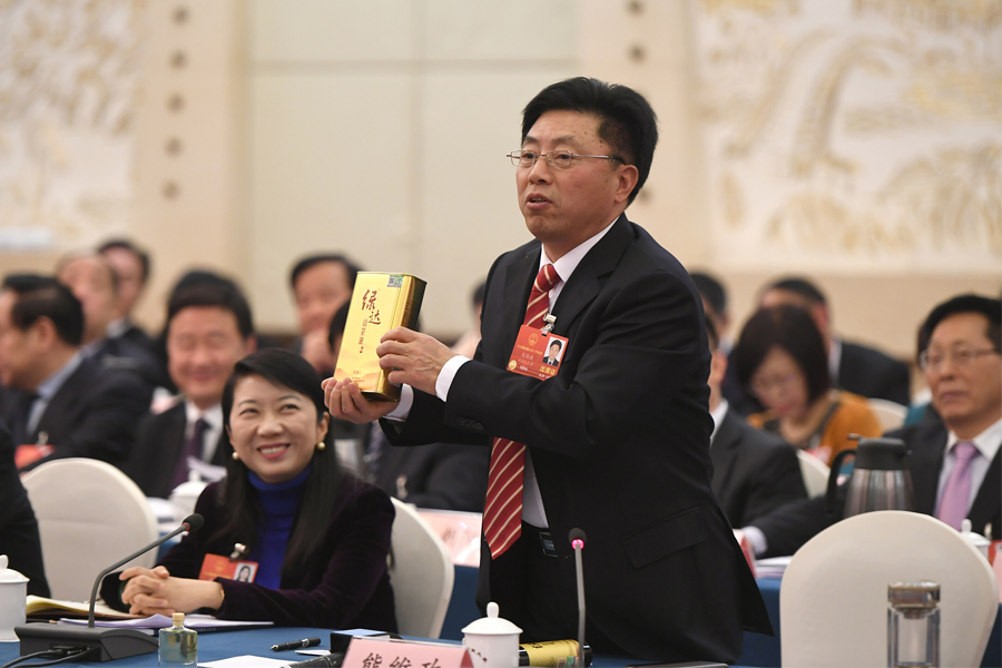 在河南团全体会议上,来自大别山革命老区的熊维政代表从手提袋里拿出两瓶山茶油,兴奋地向大家讲老区脱贫的“油茶故事”。他说:“现在的老区新县,农户油茶园流转到合作社,茶农参与产业兴农全过程,咱老区的绿水青山变成了金山银山,三亩油茶林成为脱贫聚宝盆。”