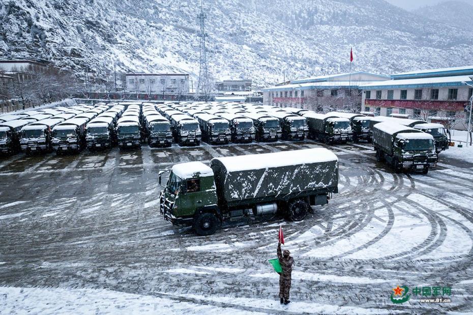 教导员吴永圣指挥车辆出场。沈奥 杨元武 石梅树 摄影报道 图片来源:中国军网