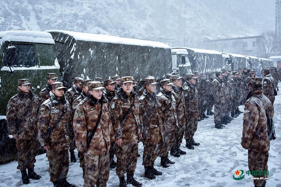 3月17日上午,川藏兵站部某汽车团三营运输梯队执行首趟进藏运输训练任务由然乌机动至扎木途中,突遇罕见暴风雪天气,严重阻碍梯队运行。险情就是命令,全体官兵历时5个小时风雪鏖战,安全机动至扎木兵站,顺利完成当天运行计划。沈奥 杨元武 石梅树 摄影报道 图片来源:中国军网