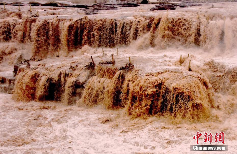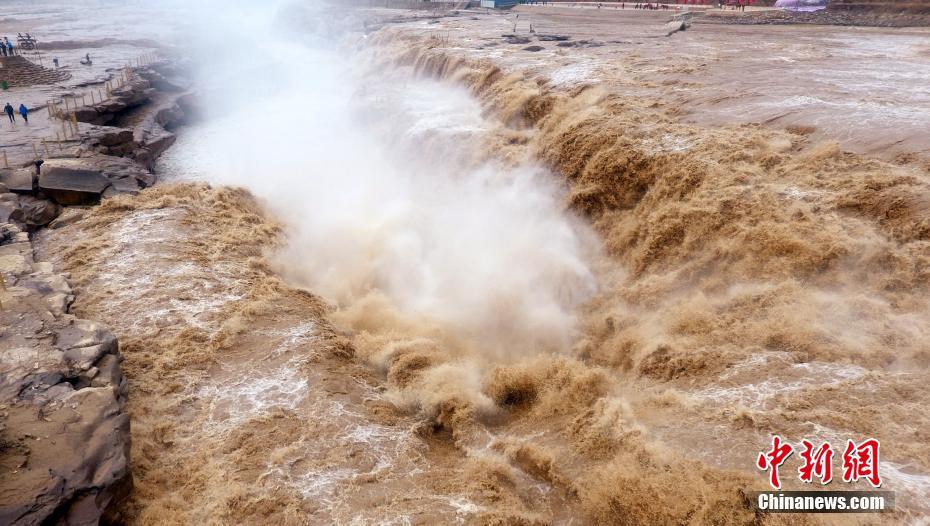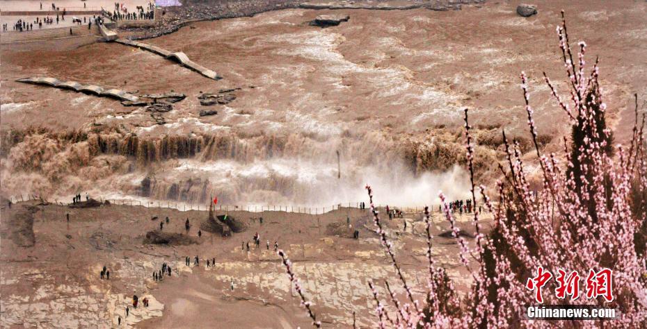 3月19日,随着气温不断的回升黄河上游融冰开河。位于山西吉县和陕西宜川县大峡谷的黄河壶口瀑布水量骤增,迎来了一年一度的 “桃花汛”。当日,可看到100余米的大瀑布群,犹如万马奔腾嘶鸣,颇为壮观。由于陕西宜川黄河景区地势较低大量的河水临时涌进主副瀑布,为了安全,游人暂时不能近距离观看。“桃花汛”是指每年三月下旬到四月上旬,黄河内蒙古段冰凌消融形成春汛。当其流至下游时,由于恰逢沿岸山桃花盛开,故被称为“桃花汛”。 中新社发 饶北成 摄 图片来源:CNSPHOTO