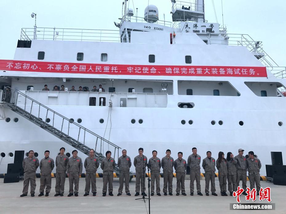中国“大洋一号”科考船3月20日从青岛起航,执行2018年综合海试任务。此次海试集装备海上试验和科学调查于一身,试验区域包括中国东海、南海和西太平洋。本次不同于以往仅进行装备试验的单一化海试,本次“综合海试”涵盖了5项装备海上试验和3项科学调查共8项任务。据悉,本次海试共45天,其中海上工作时间42天,共有中国18家科研院所及高校的119人参加。 胡耀杰 摄