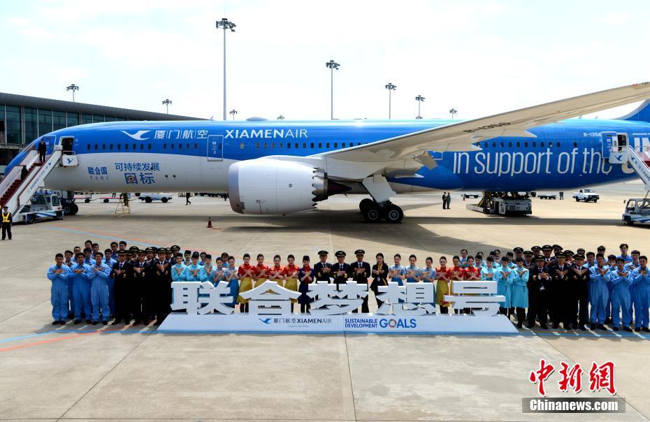 机身点缀有联合国可持续发展目标的标识。王东明 摄