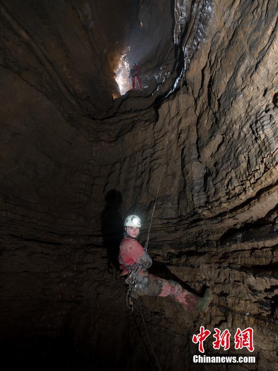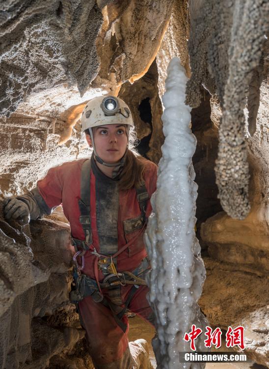 据了解,国内外探险家多年的科考探测活动中,发现了地下梯田、洞穴瀑布、卷曲石、石膏晶花等地质奇迹和大量洞穴生物化石、洞穴活体生物,为洞穴地质、生物研究提供了丰富的极有价值的资料。图为3月22日加拿大探险队员Jessie Morin-Buote在洞中测绘。 中新社记者 赵揭宇 摄