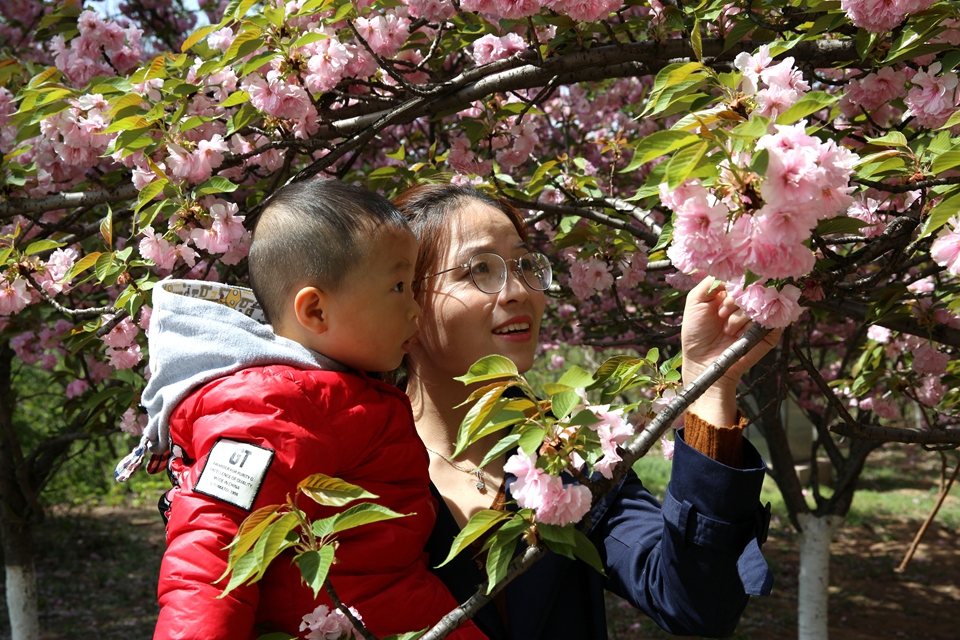 4月6日,黄河小浪底樱花盛开,吸引了大批游人。