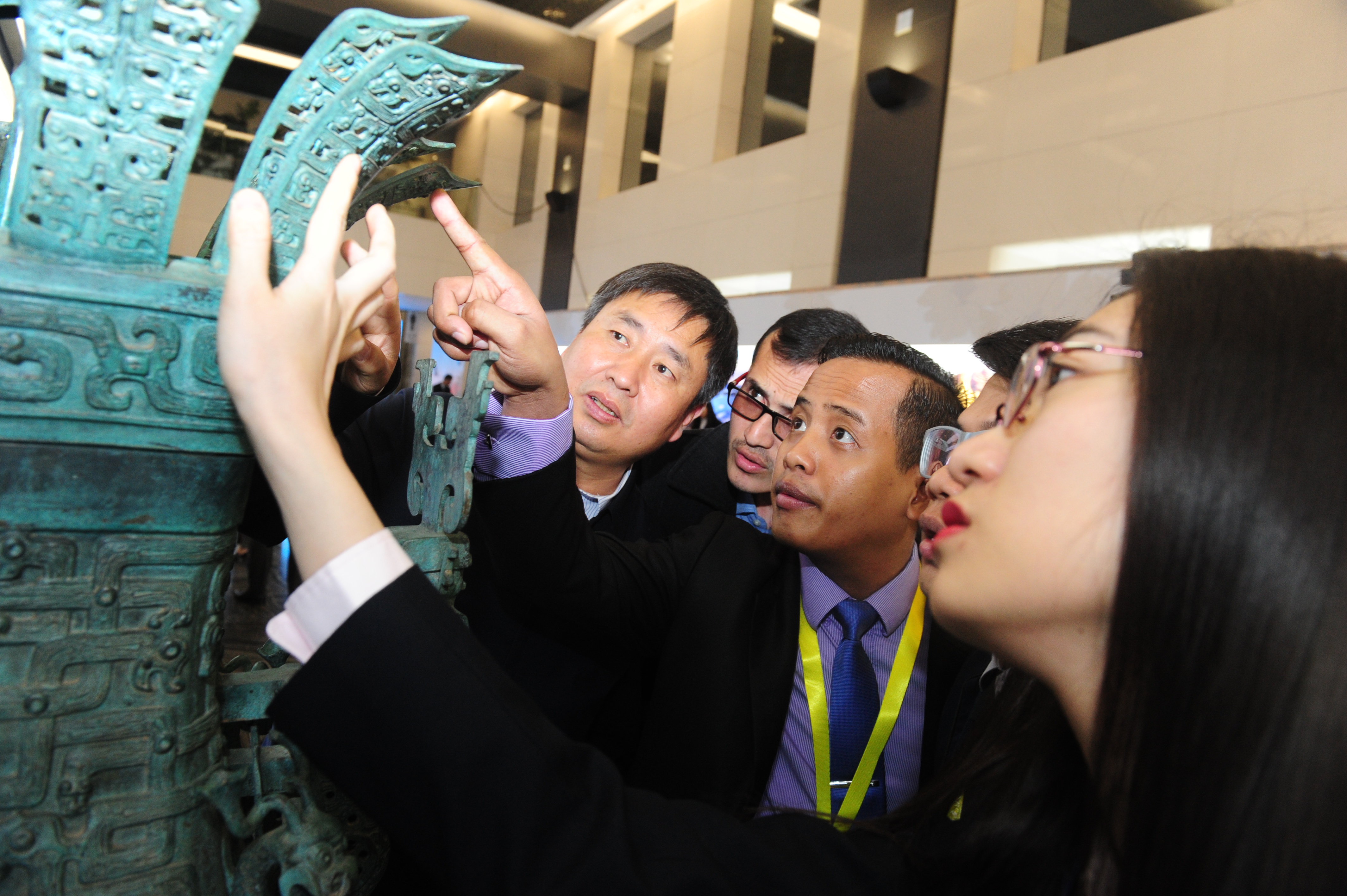参加活动的记者对国宝莲鹤方壶的制作工艺产生了浓厚的兴趣。