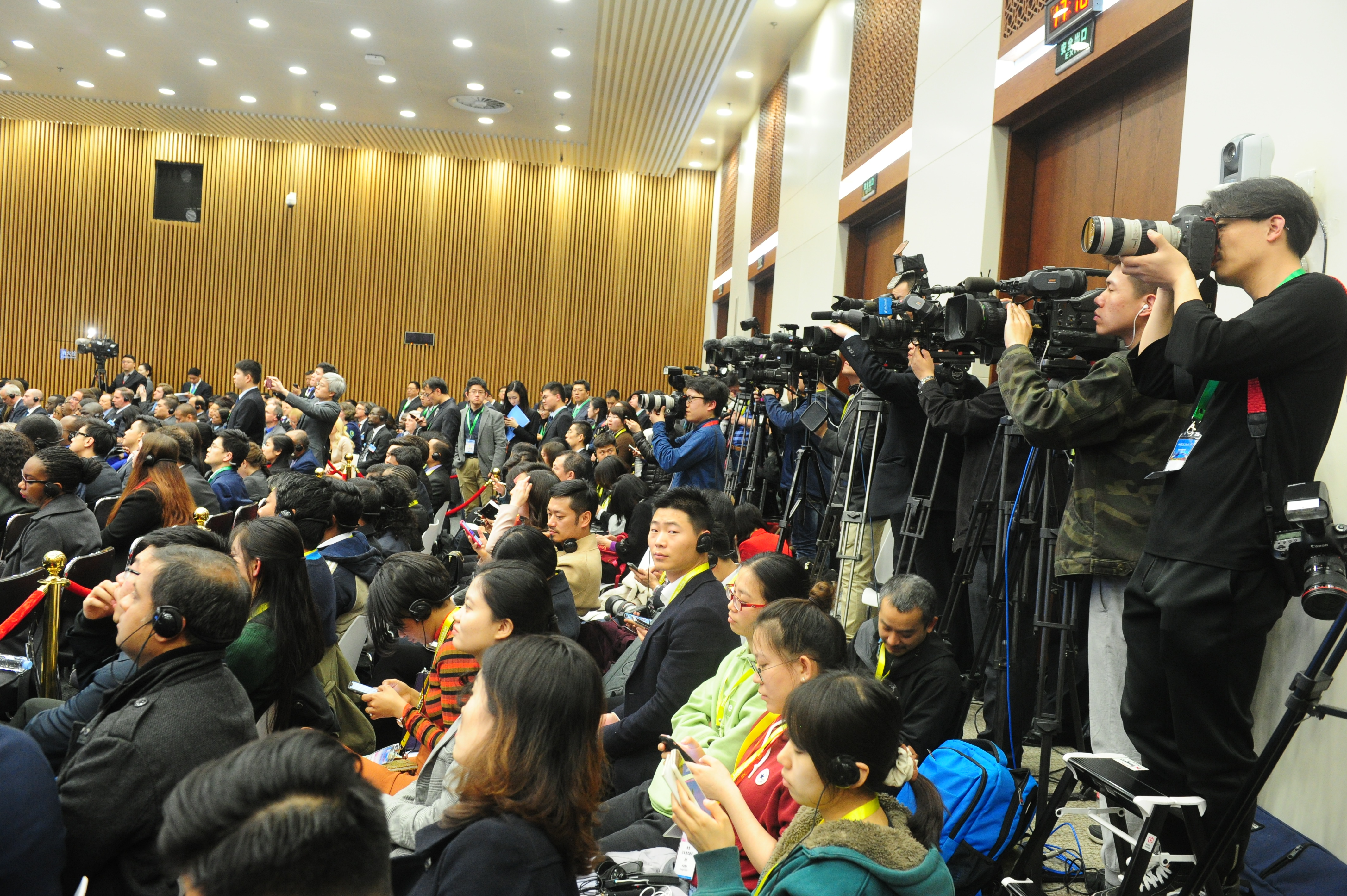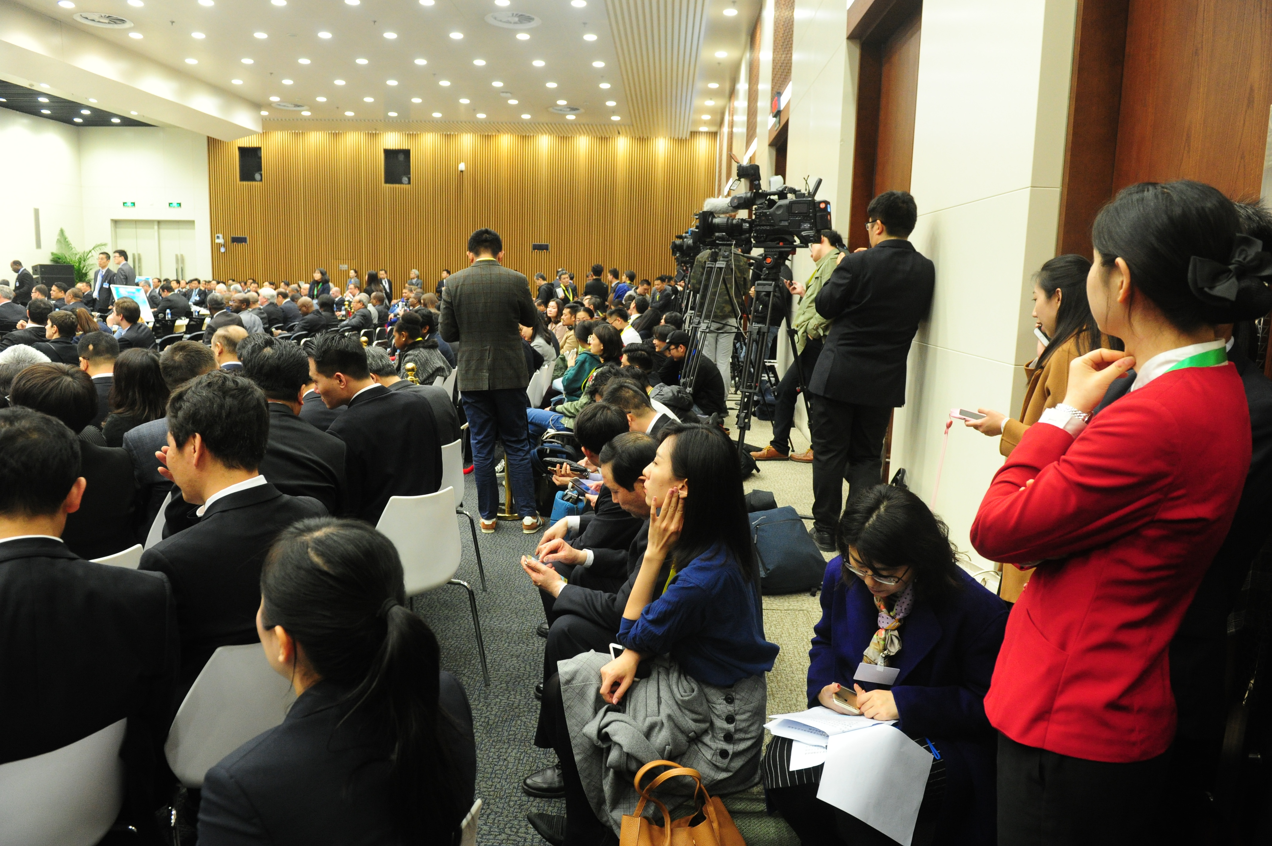 现场有多爆,看座位就知道了,没有座位,记者就把摄像台当凳子。