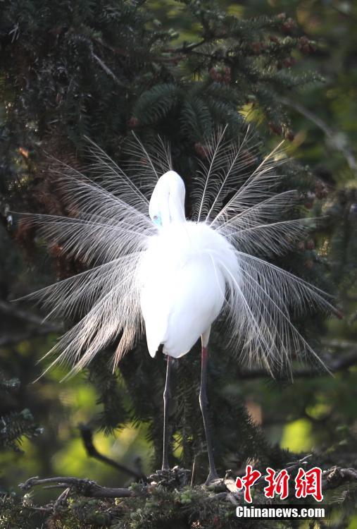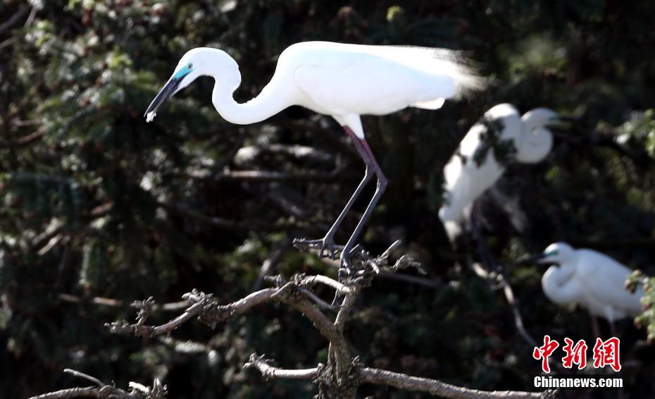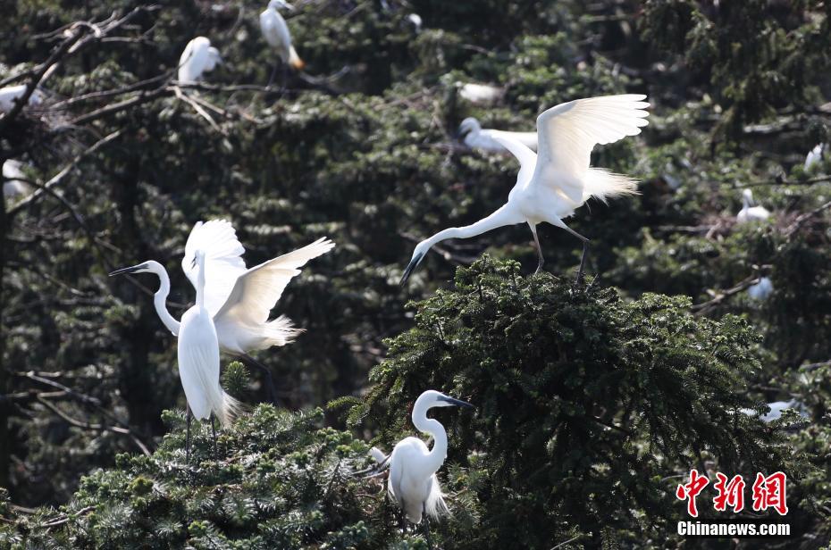 成千上万羽的白鹭在树林里或衔枝筑巢,或嬉戏打闹。 刘占昆 摄