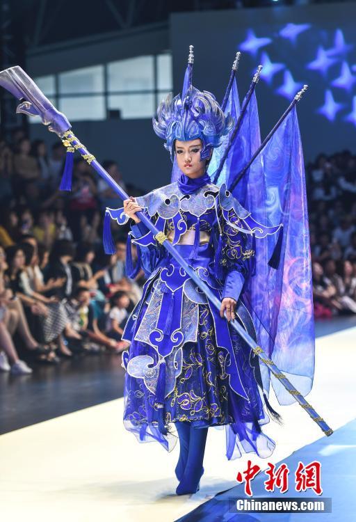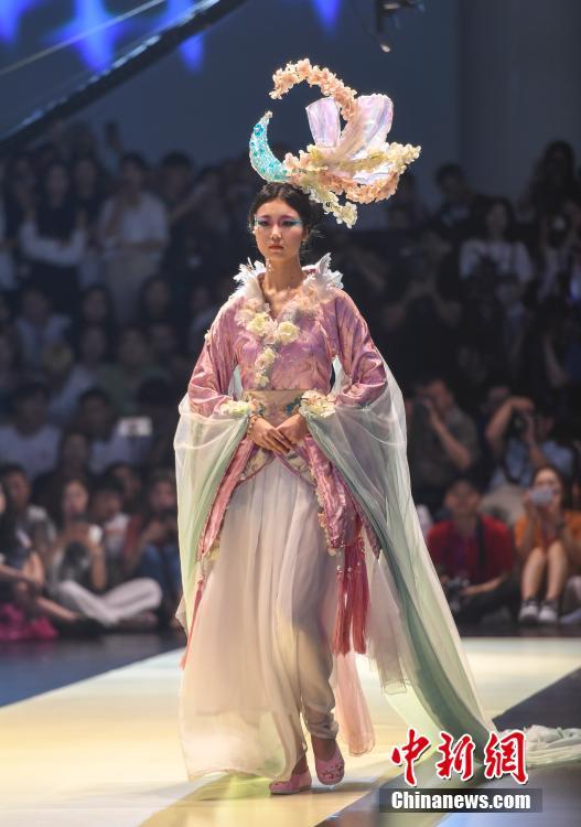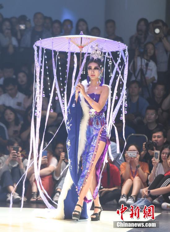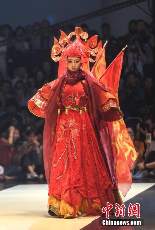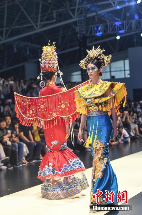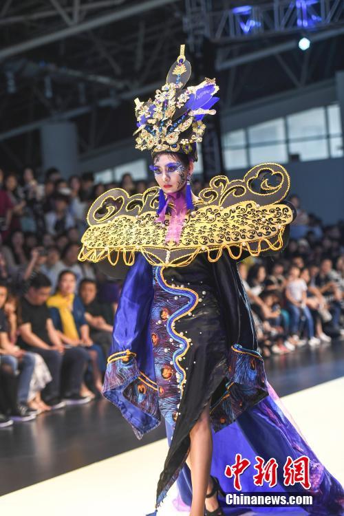 5月17日,山东工艺美术学院2018设计艺术博览会在济南开幕。学生设计师们从材料、肌理、技艺、多元化审美等多方面探索设计理念,将中国传统服饰文化,进行全新演绎。中新社记者 张勇 摄