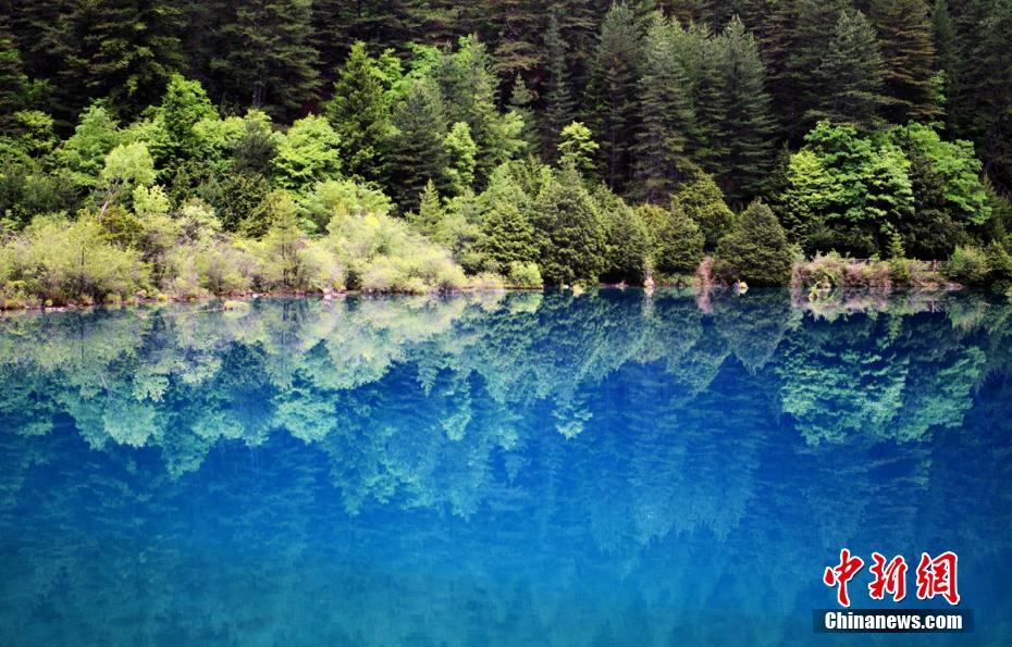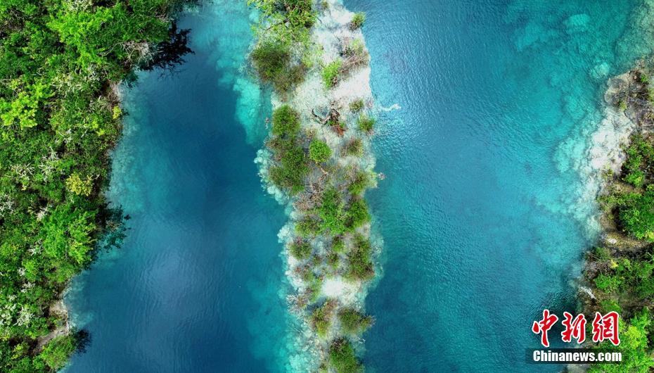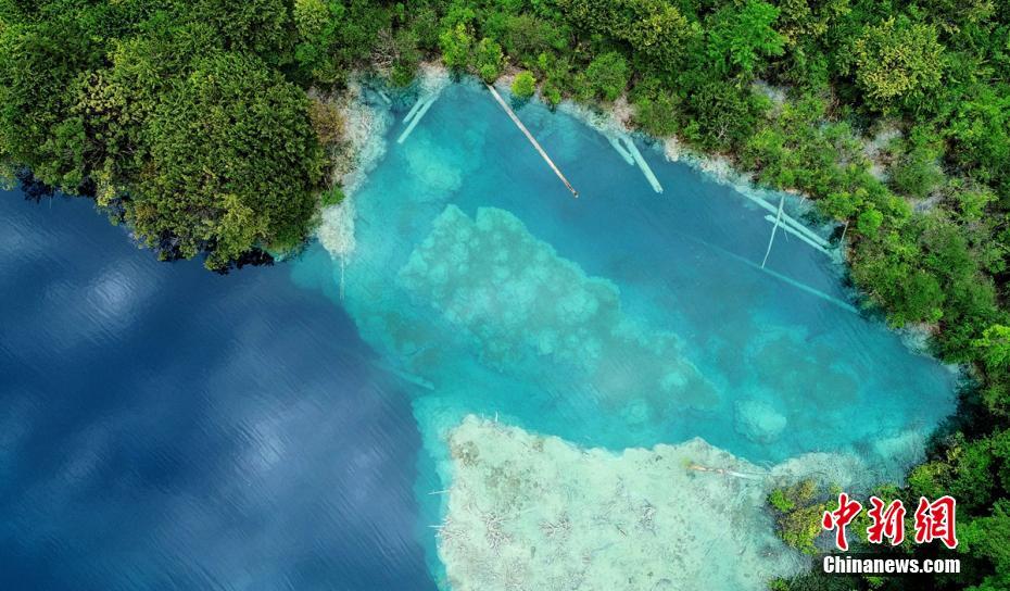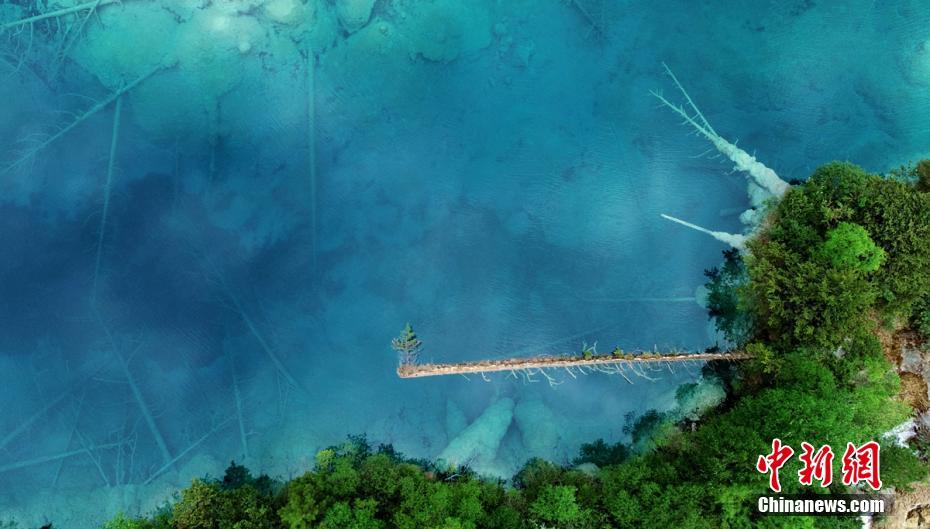 树正群海的湖水蓝得透明见底,深邃幽静。刘忠俊 摄
