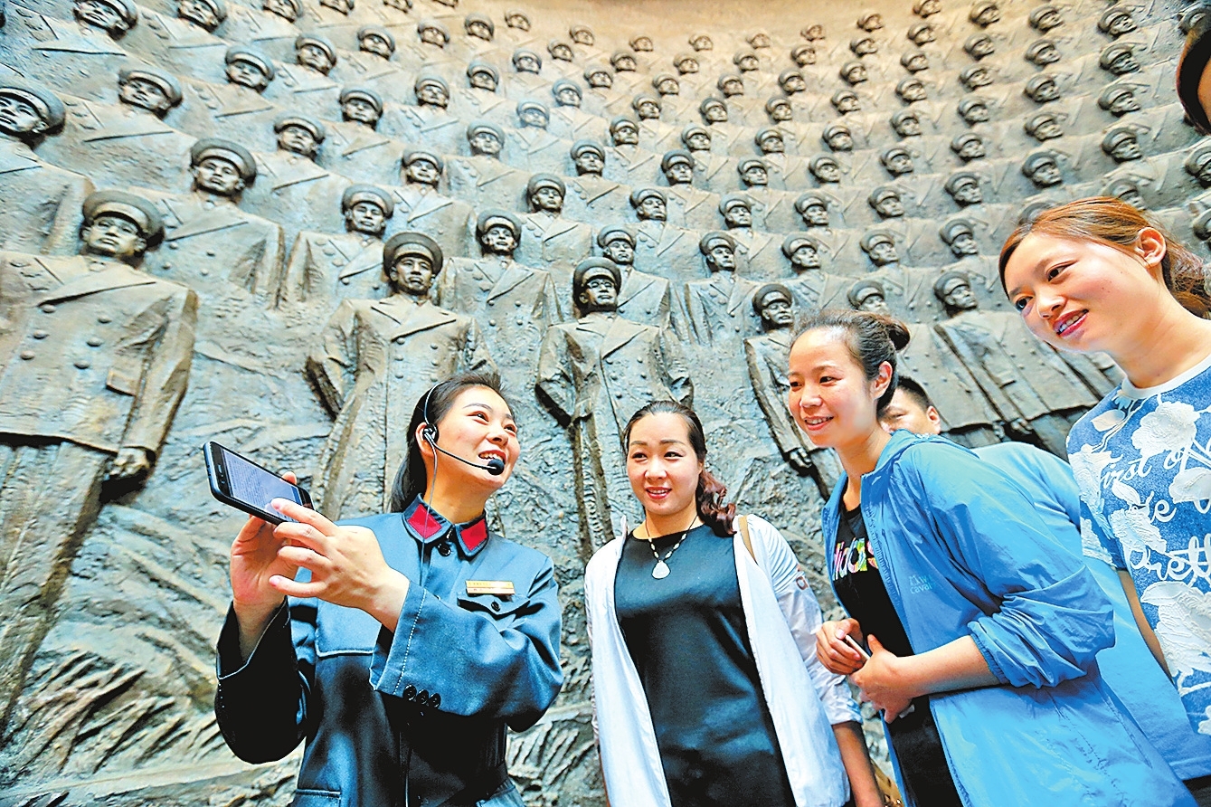 5月18日,是第42个国际博物馆日。新县鄂豫皖苏区首府革命博物馆讲解员通过AR智慧导游系统向游客介绍开国将帅的丰功伟绩。AR智慧导游系统的使用,为弘扬宣传红色文化提供了更加广阔的平台。河南日报记者王铮摄