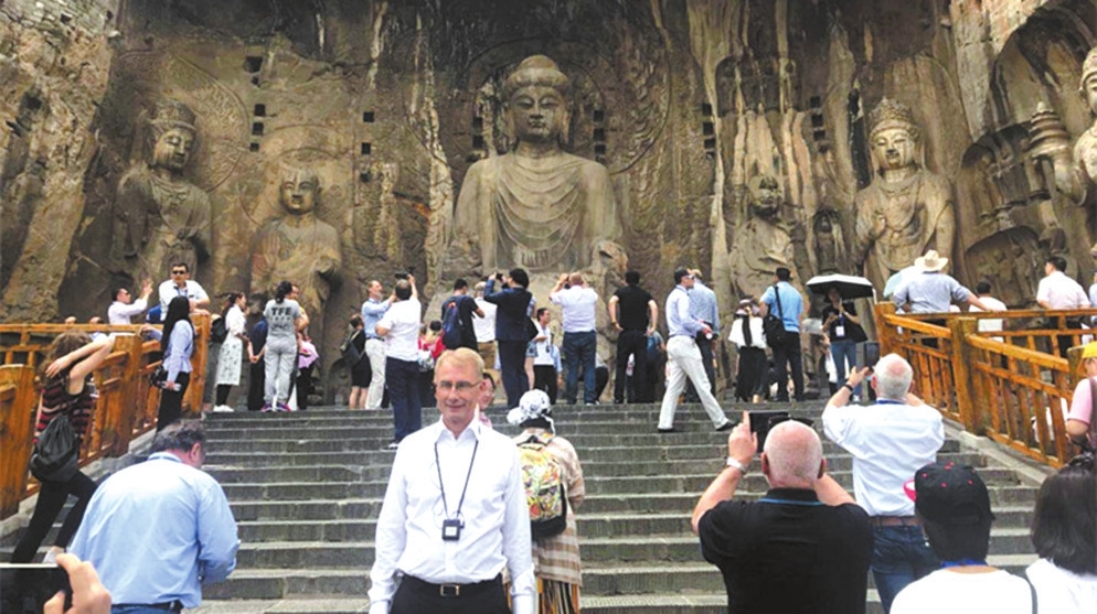 外国宾客陶醉洛阳龙门石窟