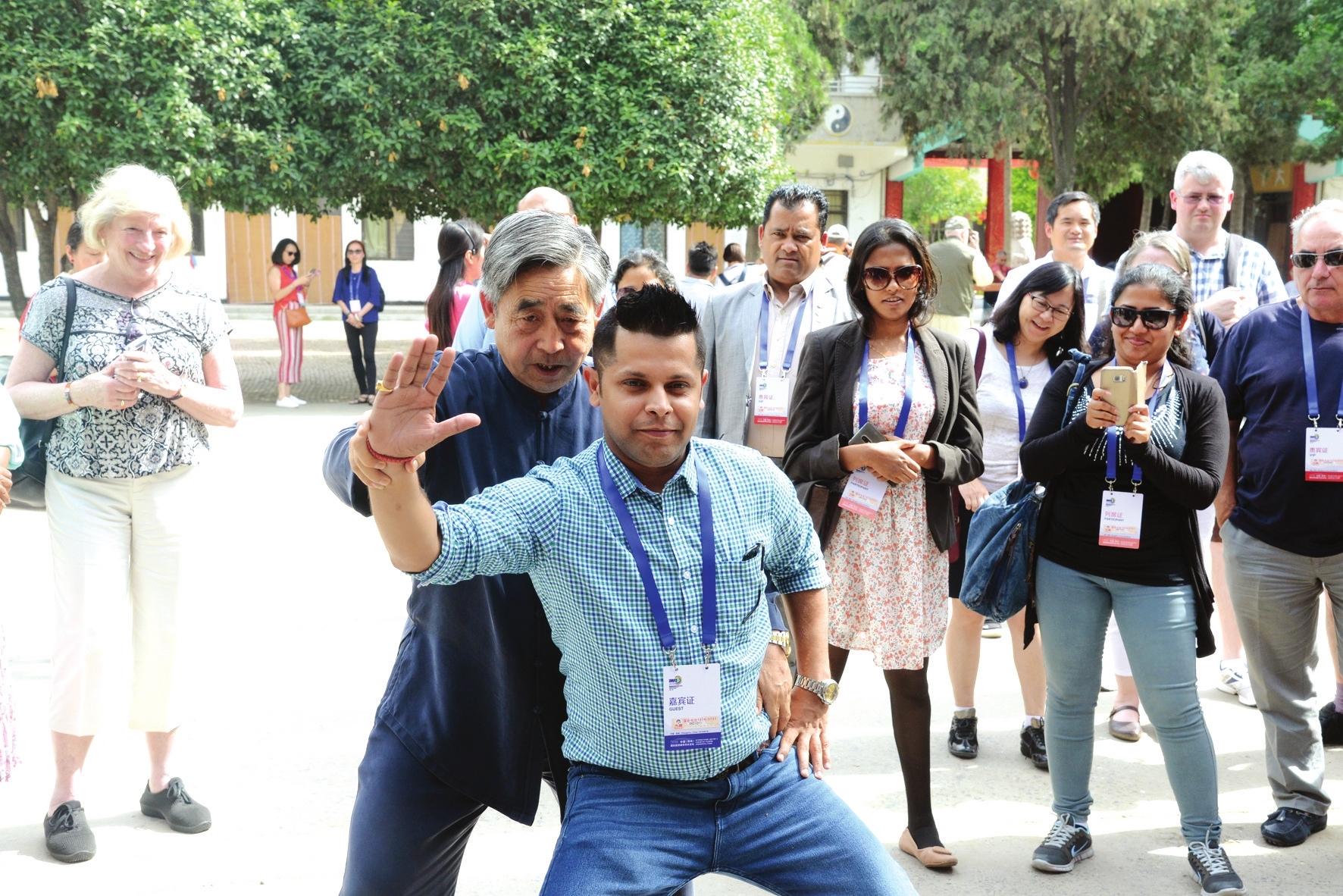 外国游客对太极拳充满兴趣,当场学艺