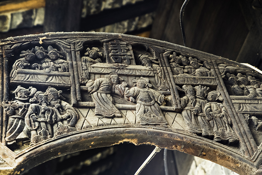每个院落居住一户人家,整体布局整齐有序门楼内形成“家家相通、户户相连”的格局。大门楼高大威风,古朴庄重,马头墙用砖雕组成,回文和水波纹图案十分精美,屋脊两端各置一瑞兽(瑞兽在文革时期被毁),显示房主的身份。屋内雕梁画栋,清楚可见,雕工精美,花鸟虫鱼,栩栩如生。