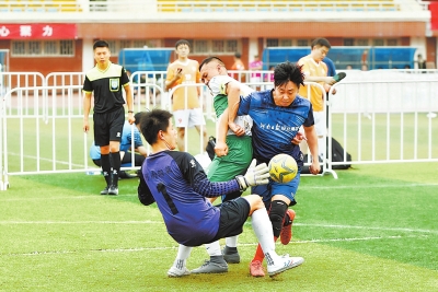 河南日报报业集团的队员正在参加5人制足球比赛。河南报业全媒体记者刘开银摄