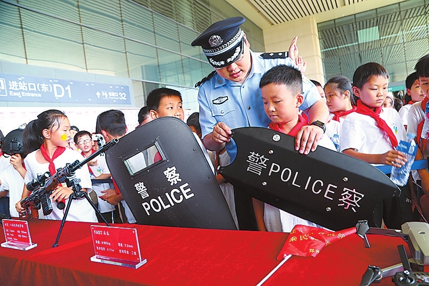6月12日上午,郑州铁路公安处郑州东站派出所组织郑州心怡路小学的少先队员开展“进警营,护高铁”夏令营主题活动。活动期间,民警带领少先队员参观复兴号高铁,让少先队员了解高铁知识,对高铁安全有更深的认识。