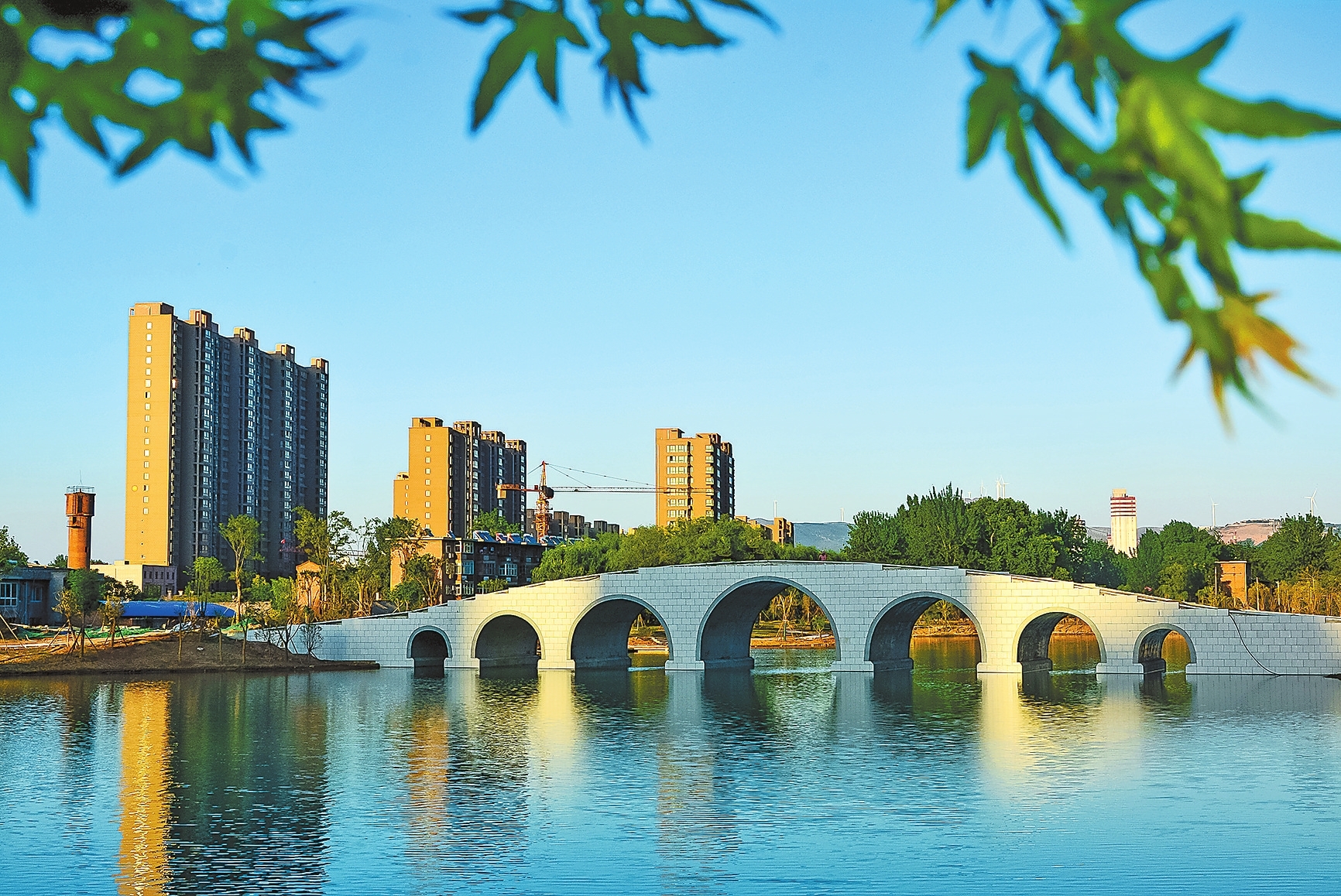 6月12日,宜阳县锦屏湖畔碧水蓝天,分外靓丽。该县大力实施全域绿化,改善人居环境,把原水泥厂废弃用地改造为人工湖,占地65.49亩,成为当地生态水系之一。 河南日报 田义伟摄