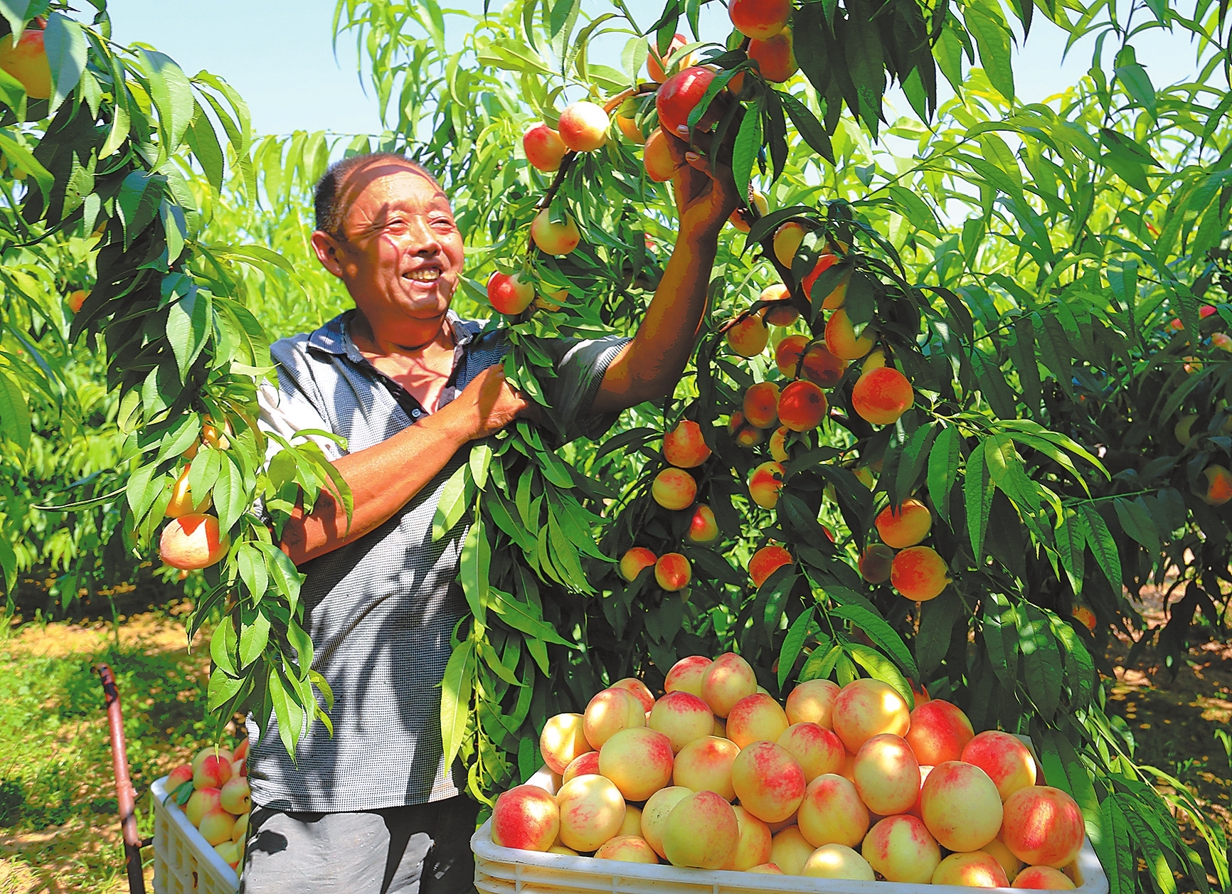 近日,农民在宁陵县乔楼辘轳湾村采摘无公害仙桃。该村是种桃专业村,当地农民采用无公害栽培模式,种植仙桃喜获丰收,亩效益5万多元,成为脱贫致富的新途径。河南日报 吕忠箱摄