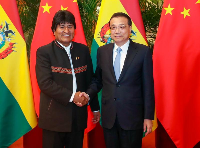 李克强指出,中方愿同玻方抓住两国关系发展的新机遇,推动经贸、旅游、人文合作,增加进口玻方有竞争力、高质量的产品。加强产能合作,深化资源开发利用,推动玻工业化进程。中玻合作是南南合作的组成部分,中方愿同包括玻方在内的拉美国家一道,维护发展中国家共同利益,促进世界和平、稳定与发展。