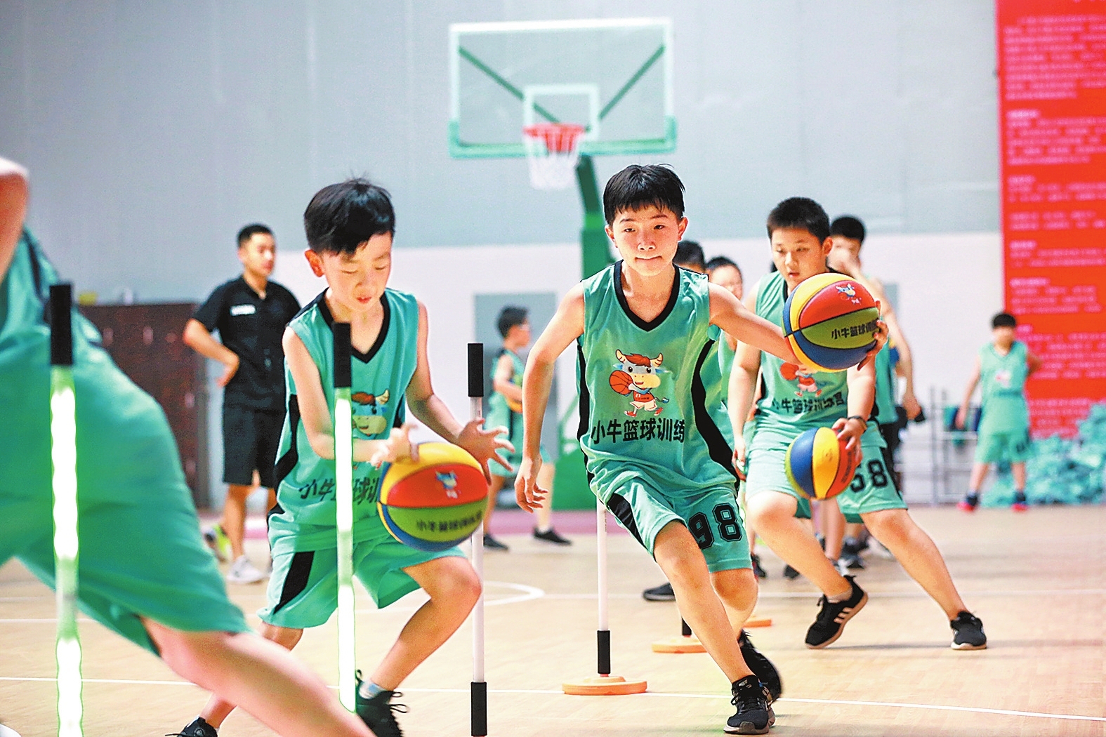 7月6日,郑州市篮球协会组织开展青少年公益篮球训练活动。教练为孩子们带来了精彩的篮球教学,小队员们进步飞速。据了解,举办该活动的目的在于通过专业、创新的篮球理念,让孩子们享受运动带来的快乐。河南日报记者王铮摄