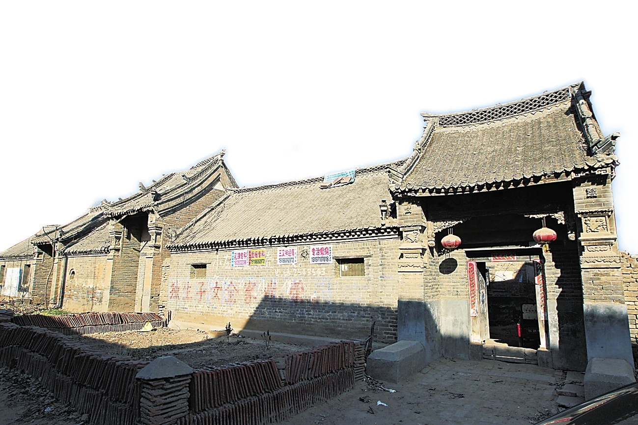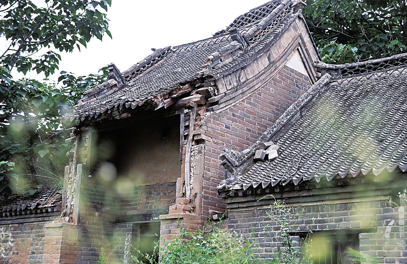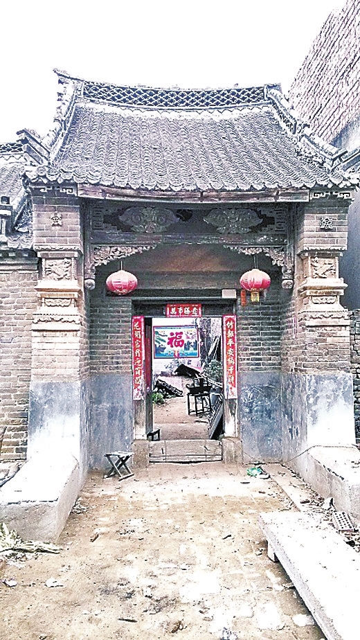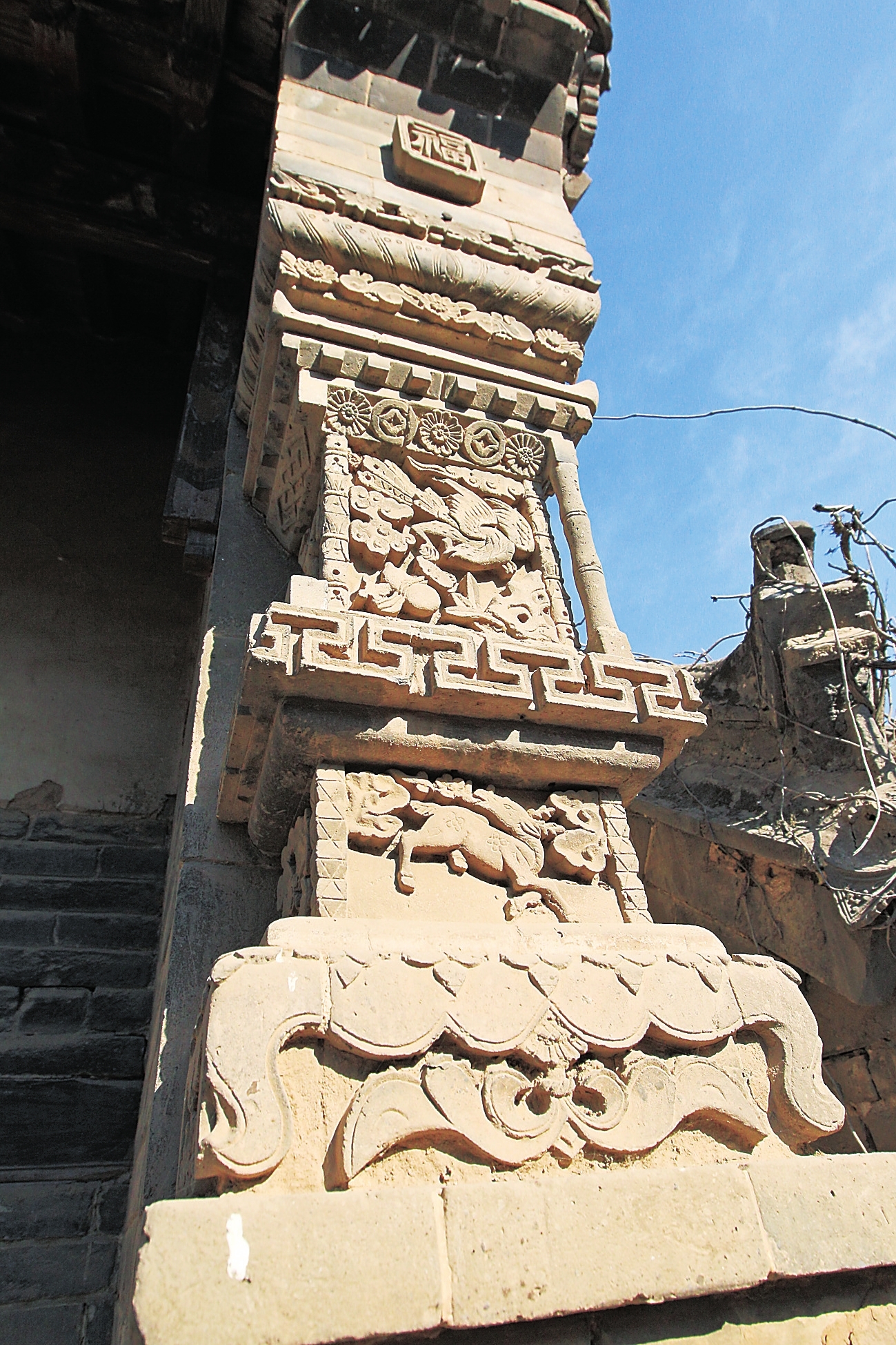 这三处并排坐落,如列兵一般的门楼,六个墀头(chí,古代传统建筑构建之一,山墙伸出至檐柱之外的部分,突出在两边山墙边檐,用以支撑前后出檐)全部遭到破坏,地上还散落着一些碎砖瓦块。之前那麒麟、凤凰、花卉、鹿、福寿字刻等精美的砖雕,以及两个门楼外边屋檐下的精美花卉、花纹木雕,甚至中间门楼的木门包括门框,均已不见。