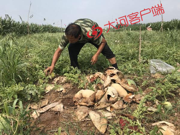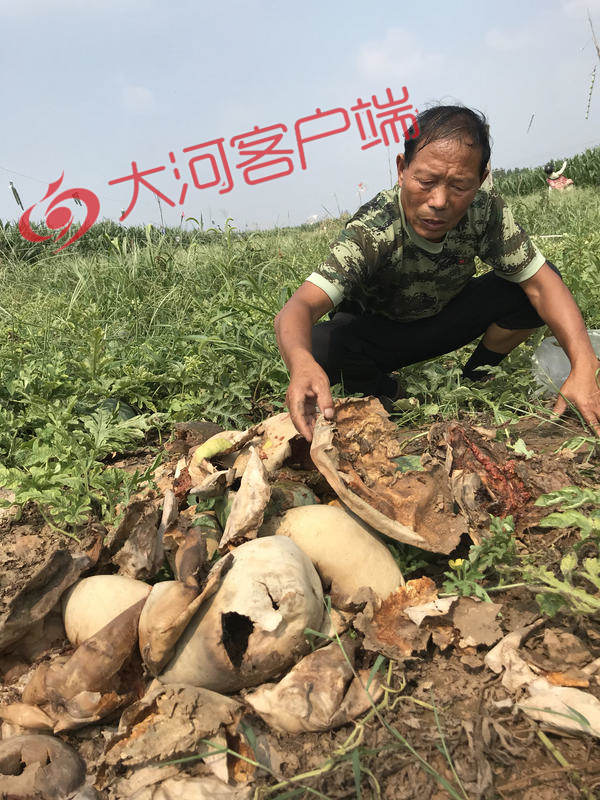 "你看看,俺这地里被砍的西瓜,现在都沤成肥了,可是凶手到现在还知道是谁呢?"王彦明蹲在瓜田里,掀起一片片沤烂的瓜皮,百感交集。他告诉记者,自从6月30日上午发现自家的西瓜被人砍烂报警后,他和家人都迫切希望警方能够早点帮他们抓住凶手,给他们一家讨个说法。
