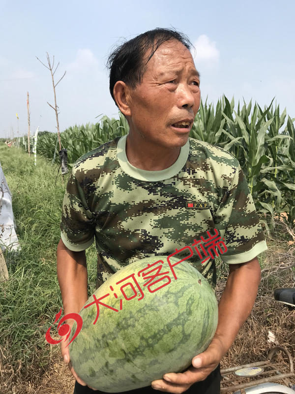 7月23日上午9时30分,记者在登封市卢店镇杨岗村一组北边的农田里,见到了正在瓜地里忙活的王彦明。他说,由于地里靠近路边瓜棚的地方,有一小片的西瓜没被砍烂,如今个个已经长到了15斤左右,他没事的时候,就到瓜地里看着,遇到有人到地里买西瓜的,他就按每斤6毛钱卖上一两个。