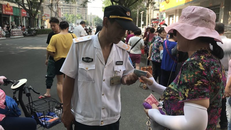 在现场冒高温维持交通秩序的巡防队员方刚、郭振安说,早上8点巡逻到这,就看到这里排起了500米长队,路西的慢车道被队伍全部“占领”,为避免造成道路拥堵影响通行,他们一直在维持秩序。(线索提供 吴先生 新闻热线 0371—— 96211)