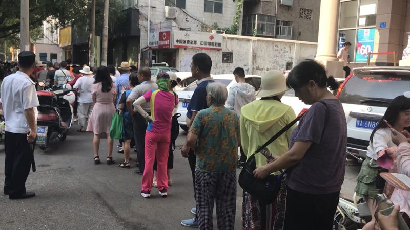 7月25日,郑州最高温达39℃。位于郑州工人路上的天然气缴费营业厅门前,排起了缴费长龙。这些市民都是听说,自8月1号起天然气要涨价,附近不少市民于凌晨四五点赶到营业厅门口排队等候,缴费队伍最长排了足足有500米远。因高温酷暑天,天然气营业厅工作人员不停释疑解惑,还在门口南侧为市民们准备了纯净饮用水解渴,避免排队市民因高温中暑。