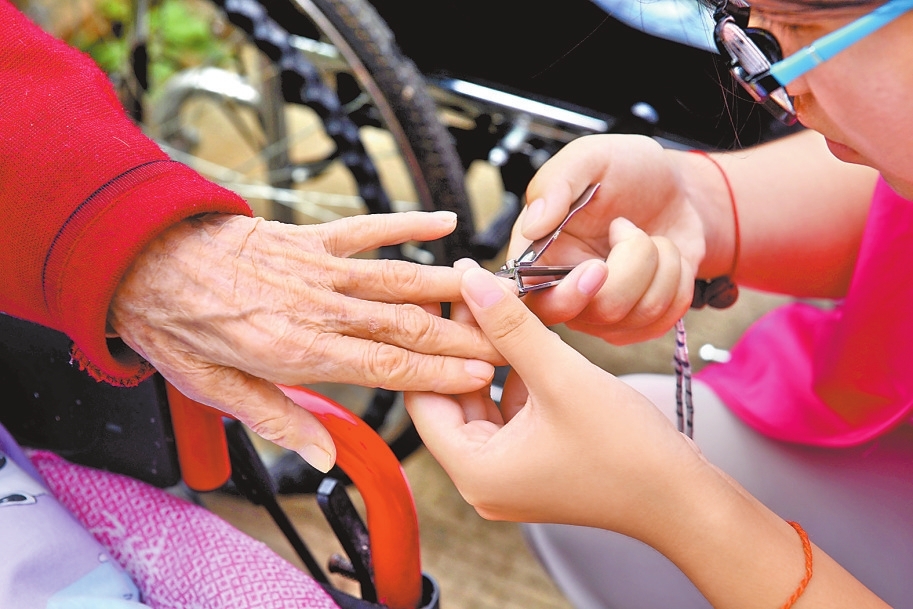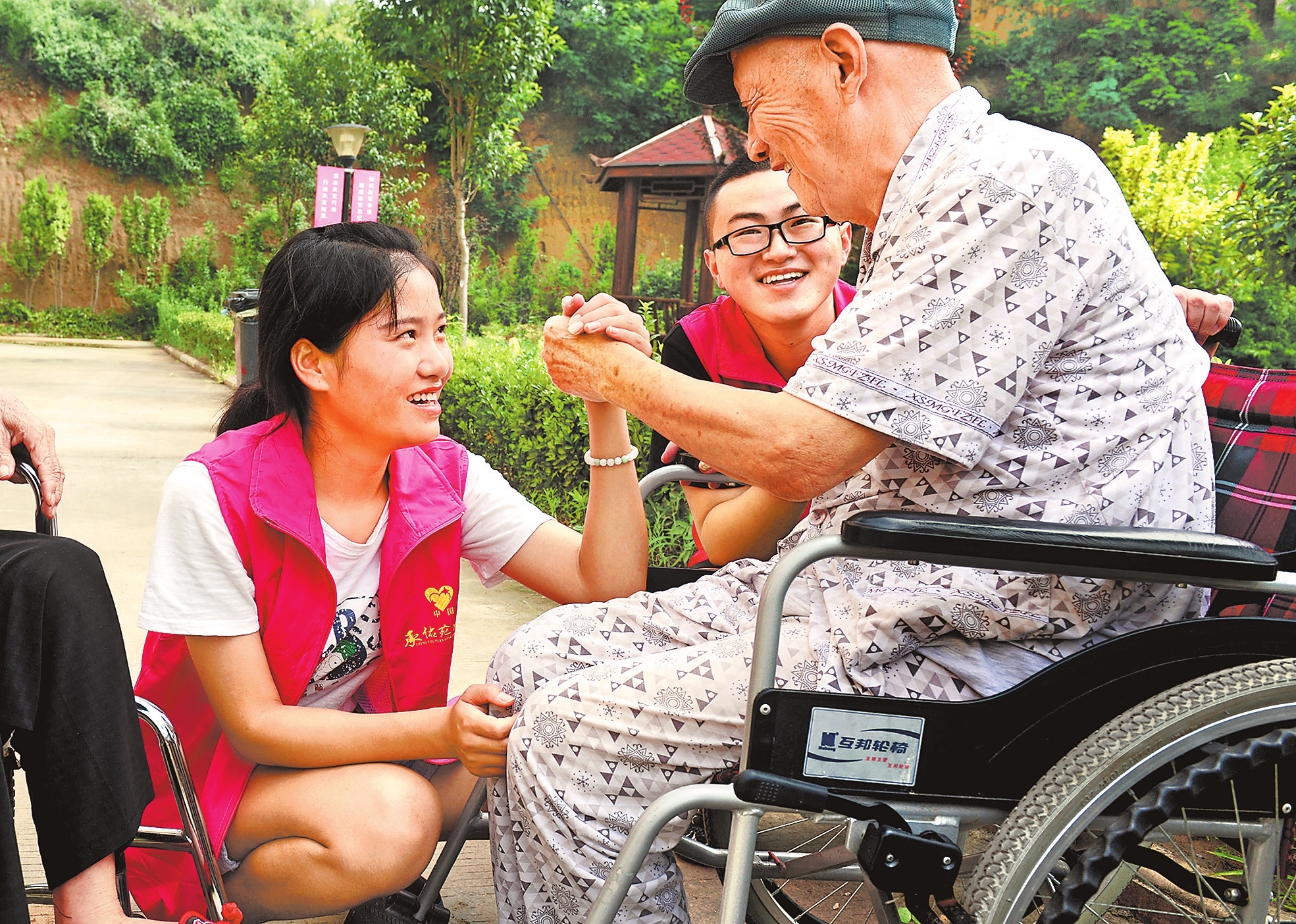 8月6日,郑州工业应用技术学院的大学生走进新密市承佑苑老年公寓,为老人送去关怀。日前,郑州慈善总会组织百名大学生到八所养老机构开展暑期养老护理员服务,每名大学生因此可获得4000元助学金。河南日报 张涛摄