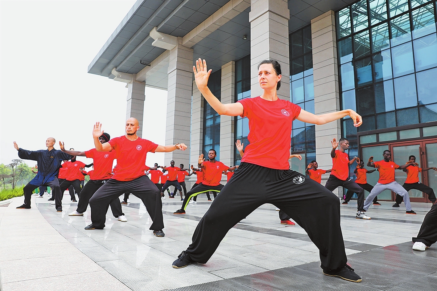 8月6日,在温县太极拳文化国际交流中心,外籍学员在练太极拳。近日,“2018年发展中国家陈氏太极拳培训班”走进温县陈家沟,开展交流。洋弟子们通过参观考察,体验中国武术文化的博大精深。河南日报 徐宏星摄