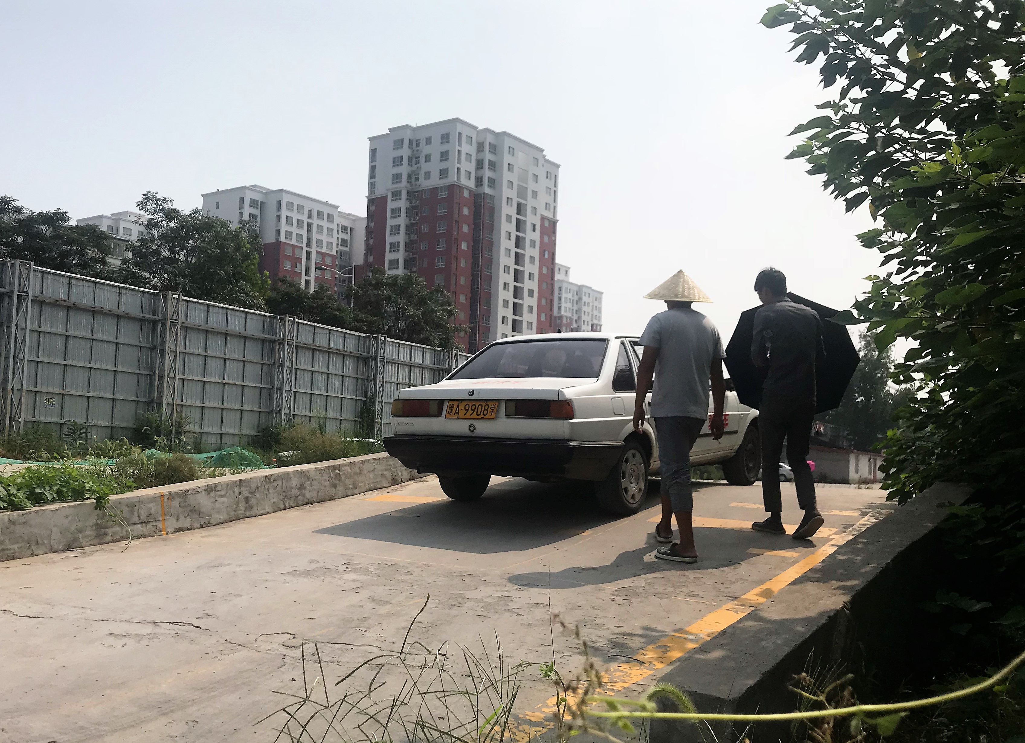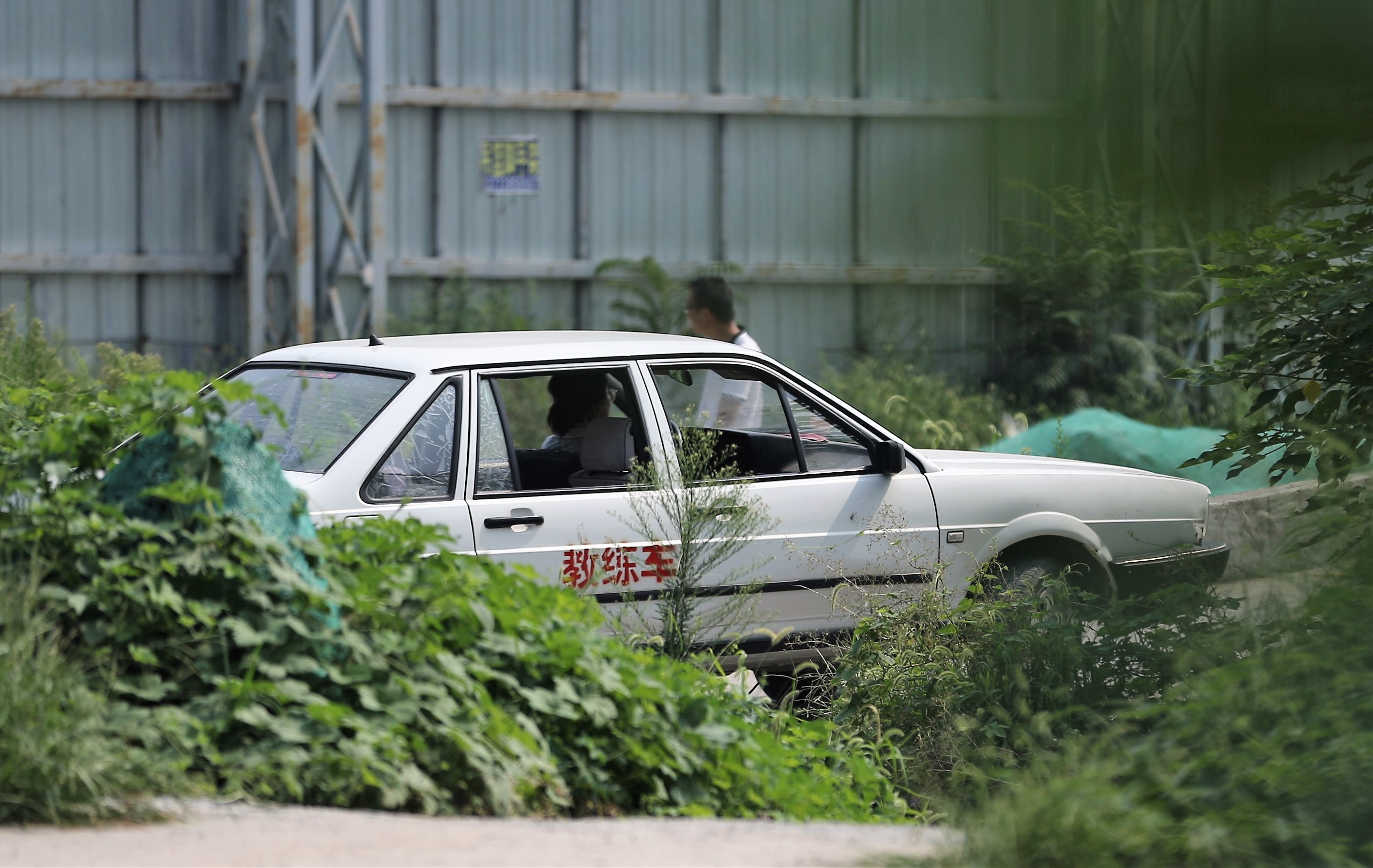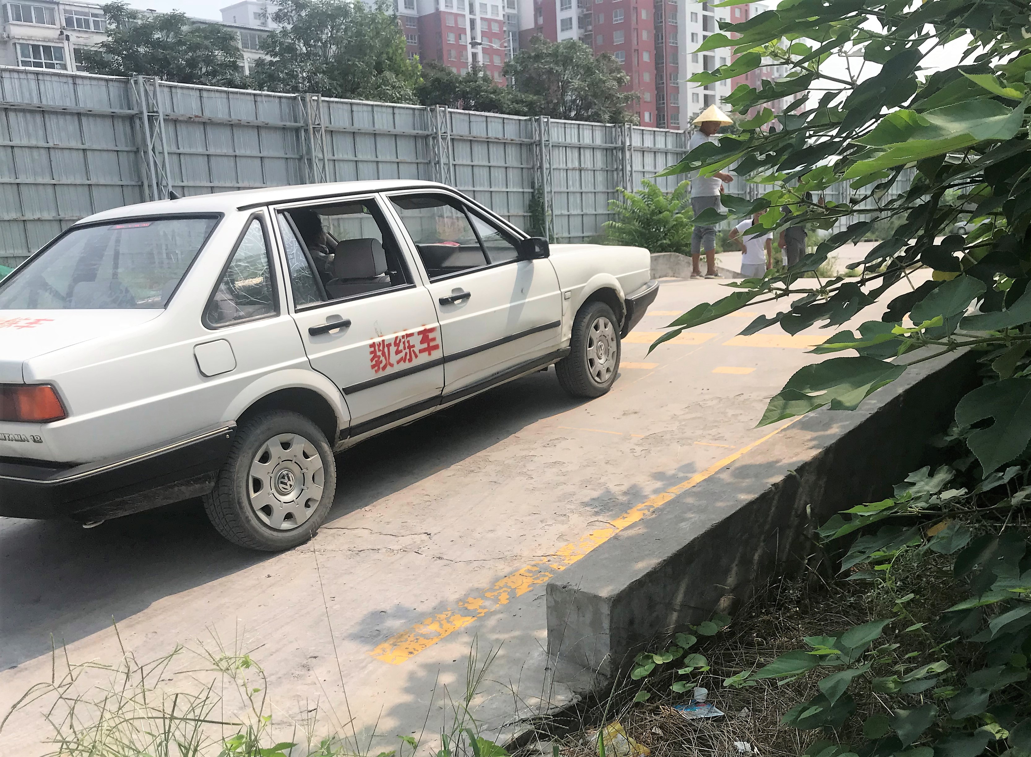 8月12日上午,记者在郑州五龙口南路与秦岭路交叉口东南角发现,一块空地被高高地围挡围了起来。其中一处围挡上开了一个大铁门,大铁门内杂草丛生,藤蔓长有一人多高。杂草从中,建了几个铁皮房,旁边竖了一个“红河驾校报名处”的红色牌子。在铁皮房旁边,有一块数百平方米大的混凝土硬化路面,三四辆车身写着“教练车”的白色汽车,在路上慢慢行驶,练习“倒库”和“半坡起步”等考试内容。因天气炎热,一名男子戴着草帽,站在车旁不停地指点着学车的学员;而几名女生站在旁边,打着遮阳伞望着车上的人练车。