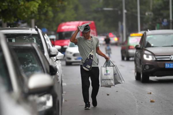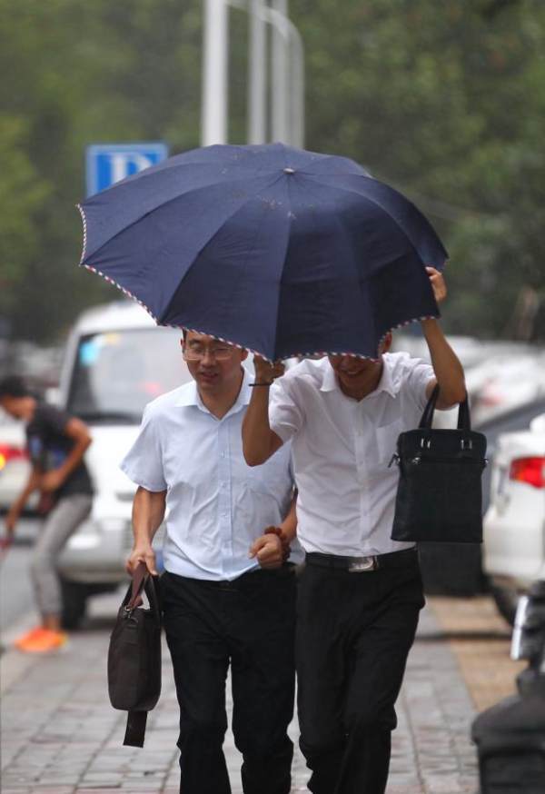 8月16日12点,郑州市姚寨路南段,一阵狂风袭来,将路边的单车吹倒不少,把几名骑自行车的女子吹的不能前行。之后下起一阵急雨,行人们纷纷躲避。