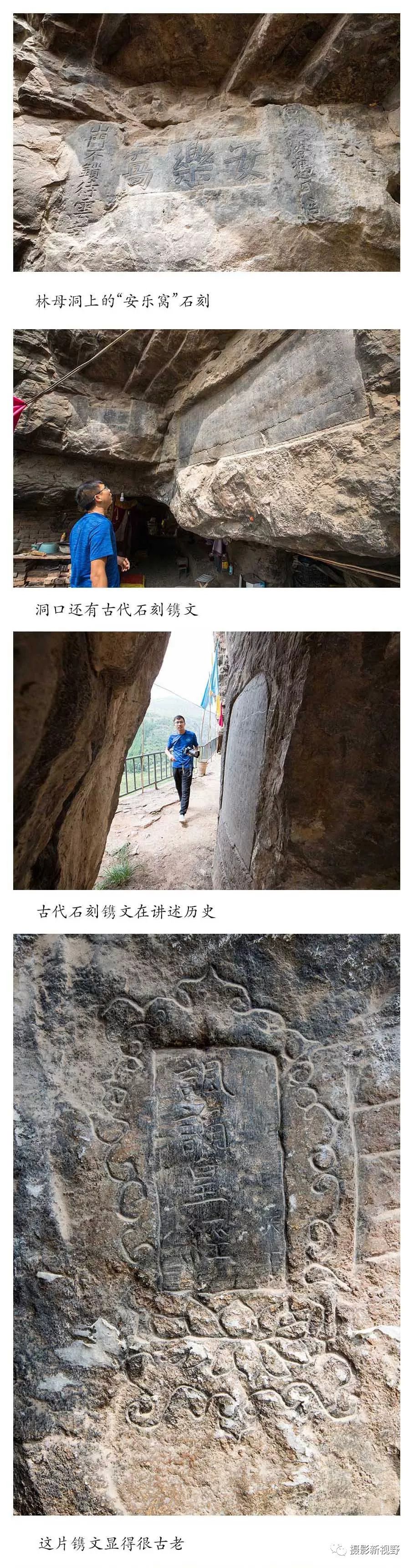 现在山崖上的林母洞就是“长林石室”,在长林石室东口,有一幅明代石刻楹联:“石洞无灯凭月照,山门不锁待云封。”横批:“安乐窝。”此联精妙的描写了长林石室的神韵。