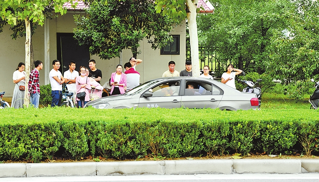 9月1日上午,记者在经开第五大街南段看到,十几辆车身喷有“教练车”字样的车辆在马路上缓慢行驶,路两边站了几堆人,都是驾校的学员。这些驾校车辆主要沿经南八路和经开第五大街南段行驶,行驶中要经过一个十字交叉路口,并在第五大街南段中间一绿化带开口处调头。这一路段附近有郑州东风日产的汽车生产车间以及几个居民小区,往来各种社会车辆出入频繁。而驾校车辆有时近乎成群结队地行驶在这里,经常与各种社会车辆混杂行驶,险情不断。