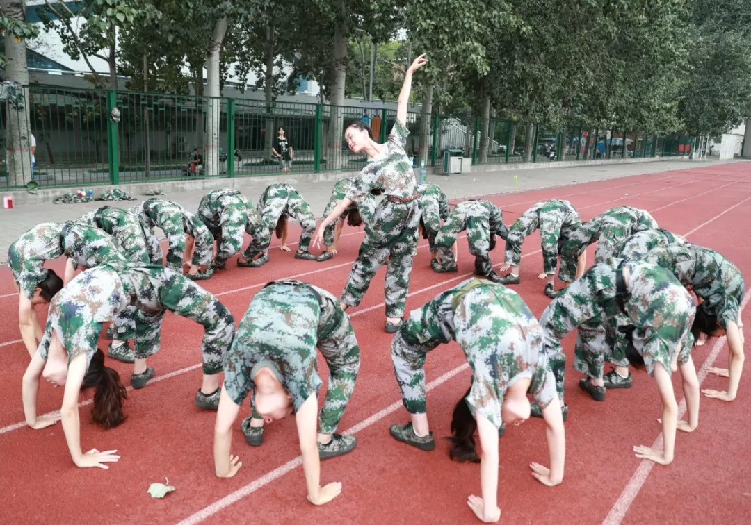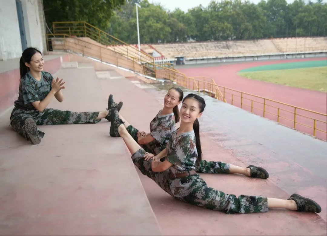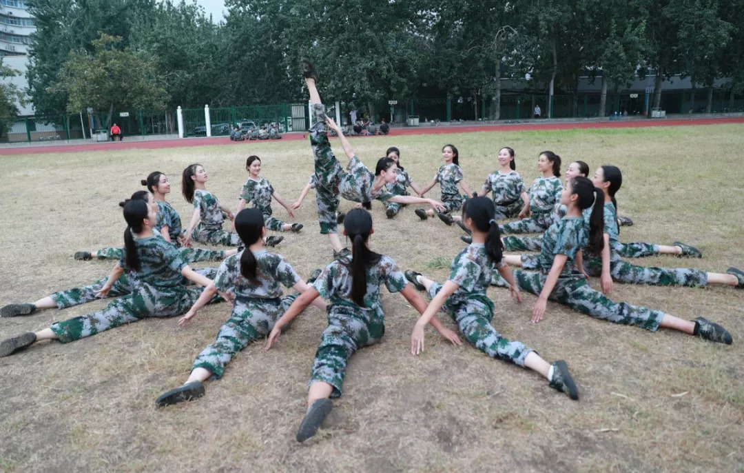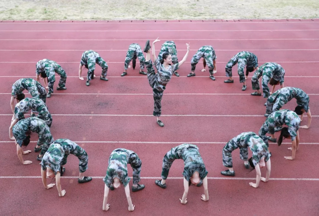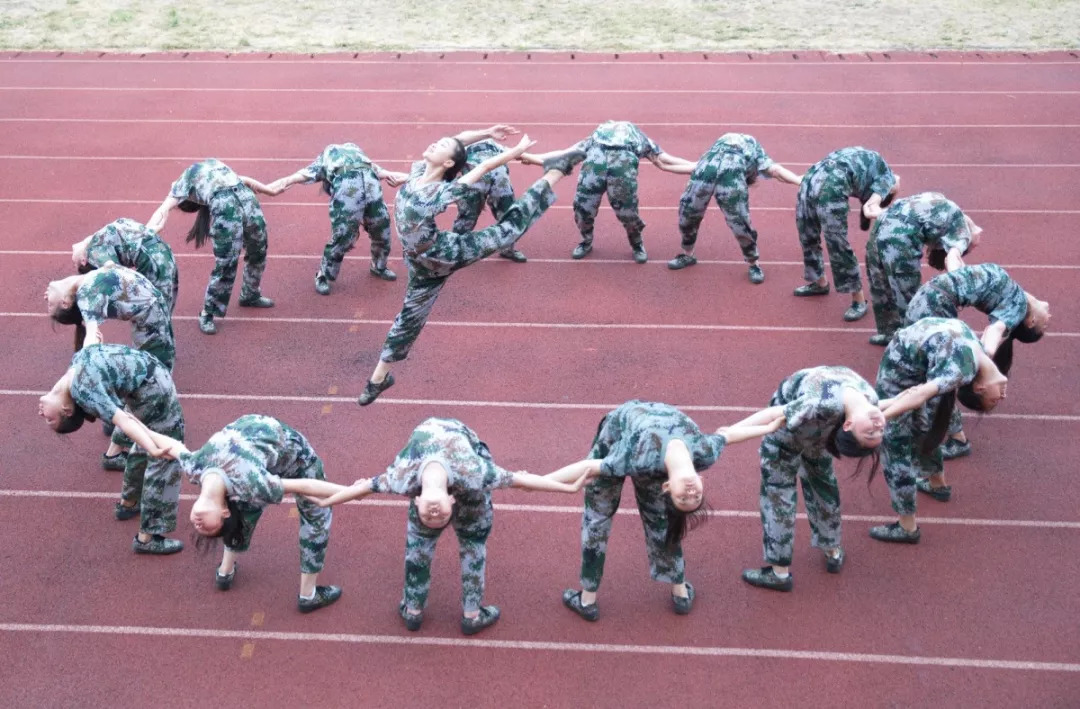 在军训的间隙,多才多艺的她们发挥创意,用多姿的身体摆出各种优美造型,美轮美奂的画面接连上演。