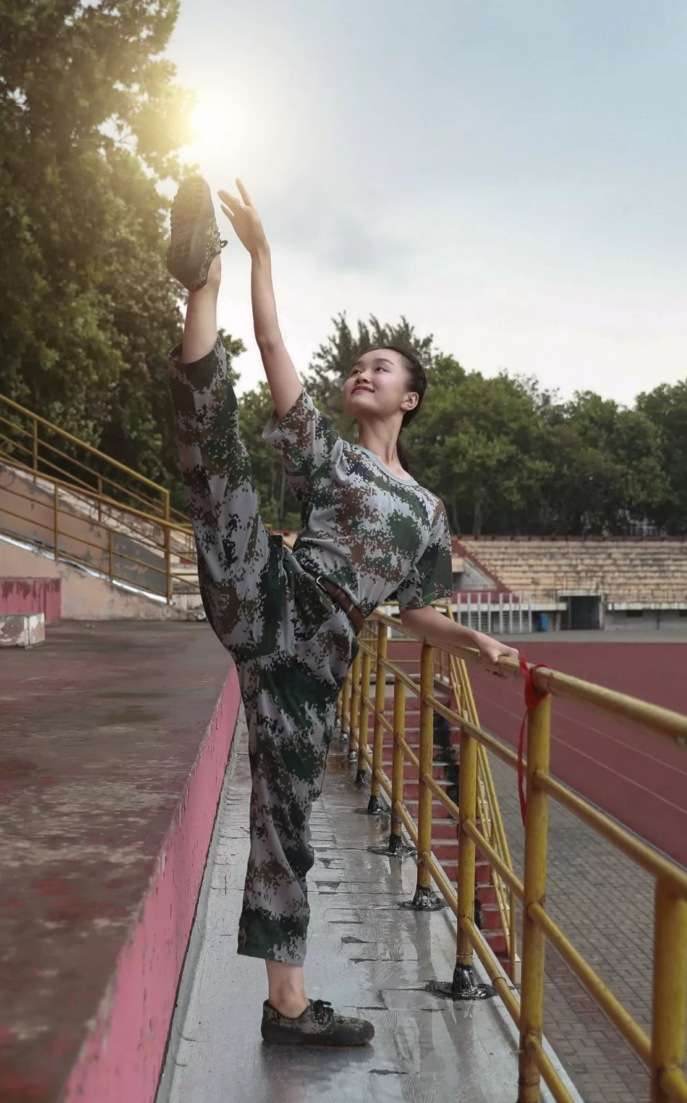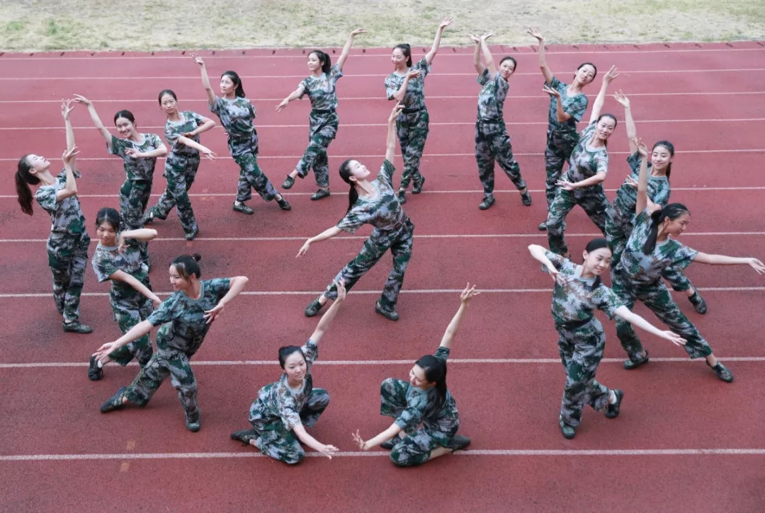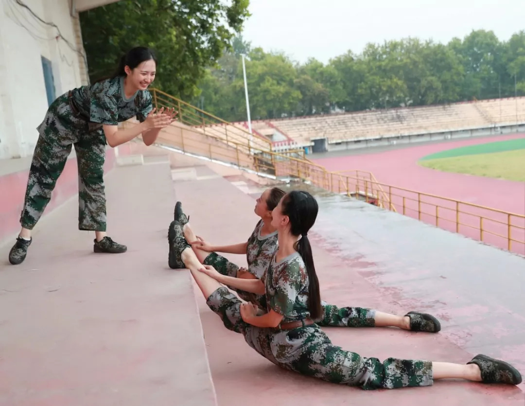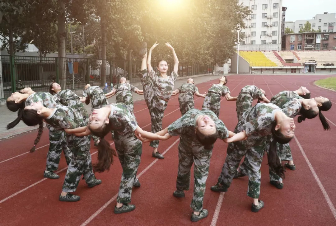 在军训的间隙,多才多艺的她们发挥创意,用多姿的身体摆出各种优美造型,美轮美奂的画面接连上演。