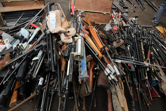 9月20日上午,在全国公安机关集中统一销毁非法枪爆物品活动河南省新乡现场,300余支枪支、30余把管制器具和3000余个自制枪支配件被当场集中销毁。