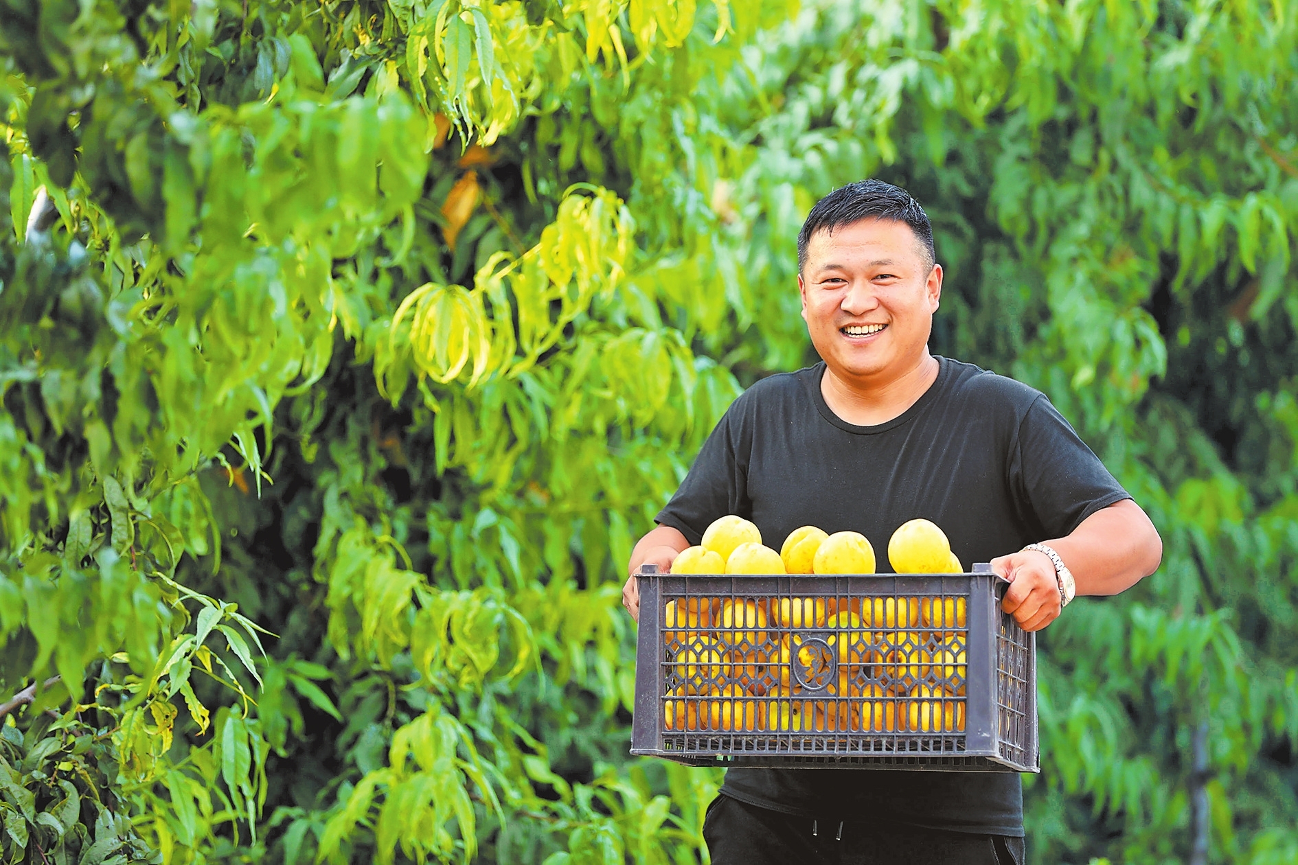 9月21日,侯利强在收获冬桃,丰收的喜悦写在脸上。